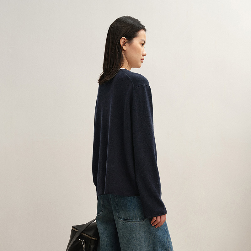 2026新款女装宽松针织开衫纯棉春秋外套纯色百搭圆领毛衣针织衫潮