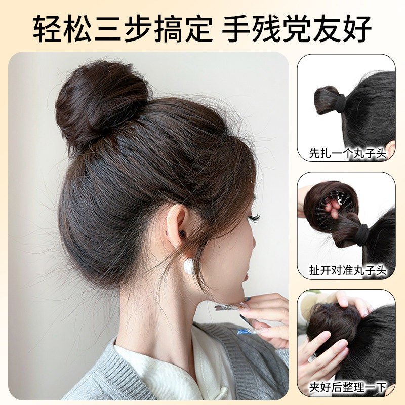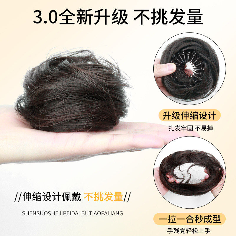 低扎丸子头假发鸡毛头抓夹盘发发包慵懒感造型头饰自然蓬松后脑勺