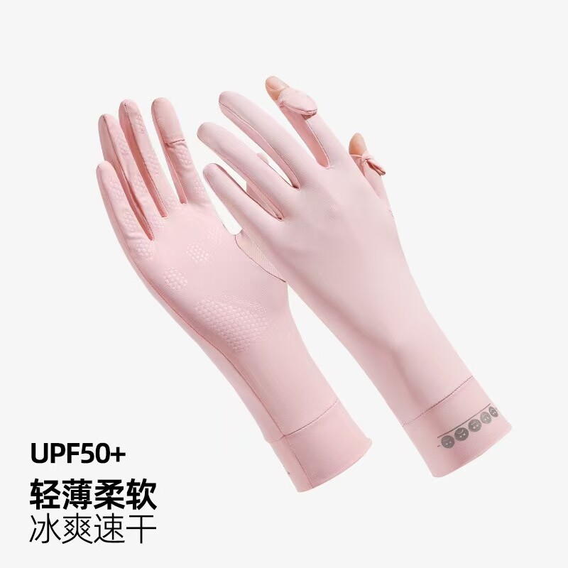 防晒手套女夏季防紫外线薄款露指中长款冰丝手套开车骑行透气防滑