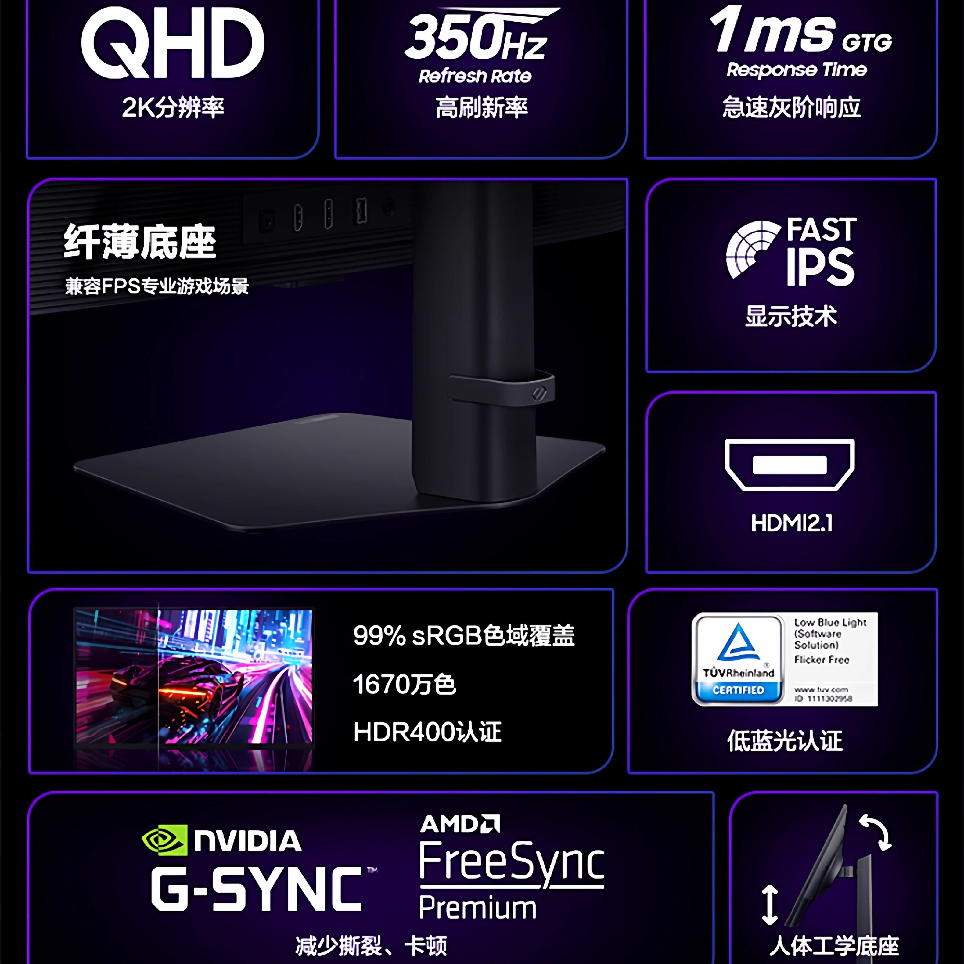 三星27英寸 G60F 2K 350Hz FastIPS电竞桌面游戏显示器S27FG606EC
