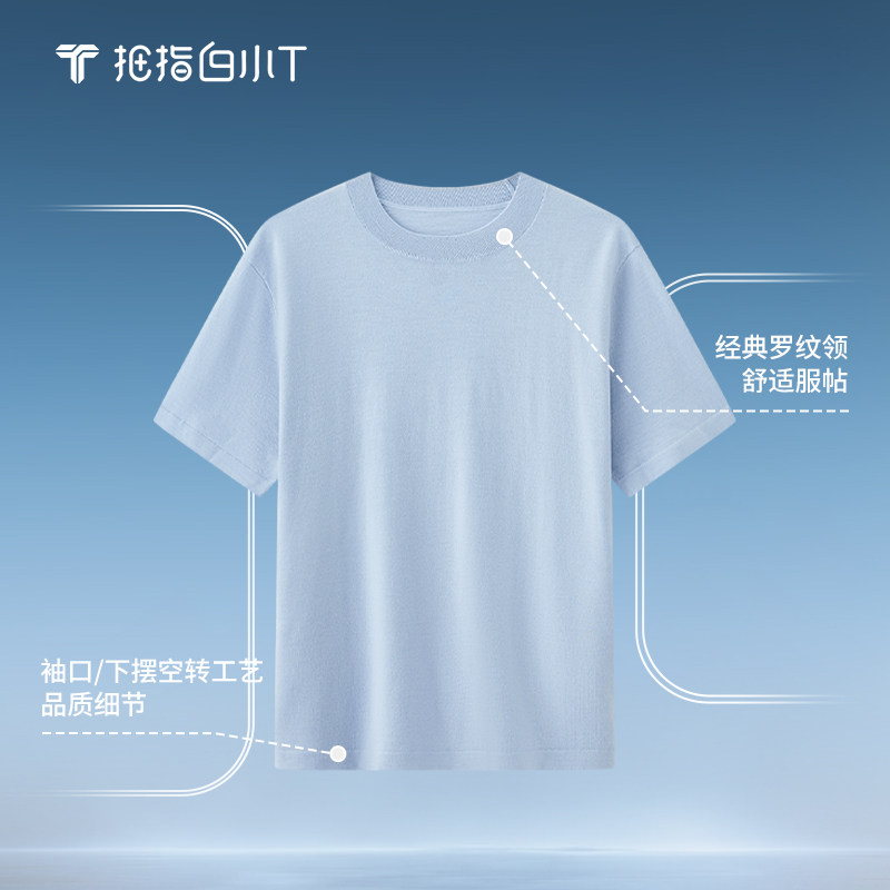 拇指白小T春夏季款纯绵羊毛男士短袖T恤圆领纯色可机洗体恤打底衫