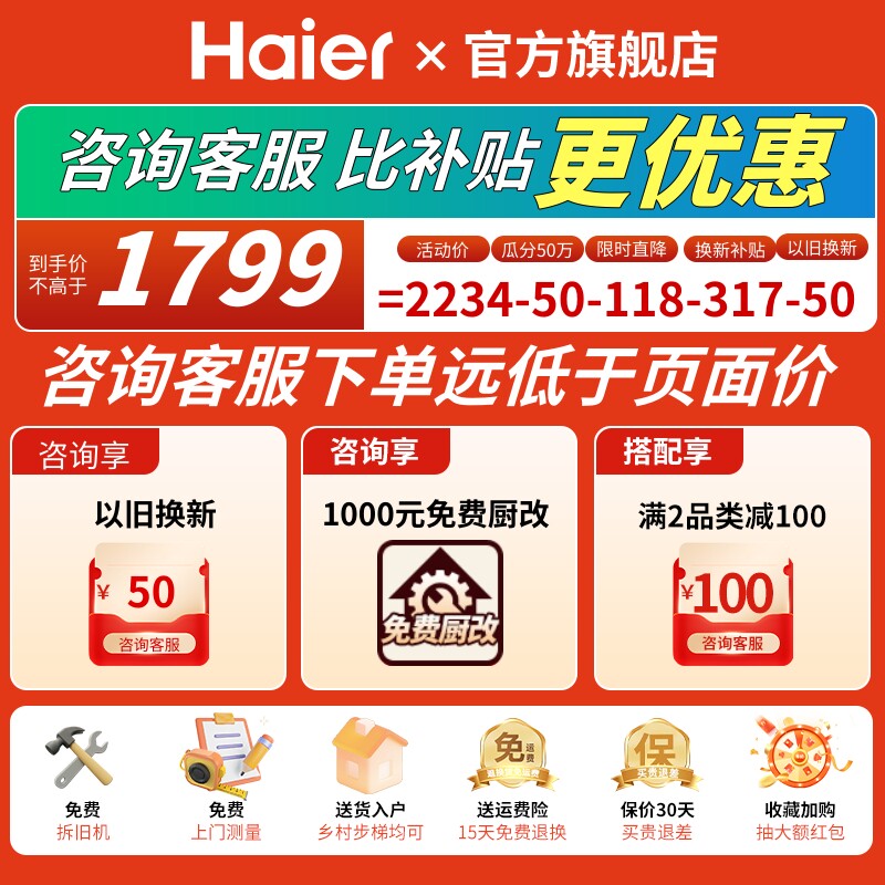 【麦浪系列】海尔消毒柜烘干一体大容量嵌入式厨房消毒碗柜EB130B