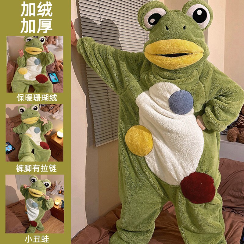 丑蛙睡袍珊瑚绒睡衣女款2025新款冬高级感加厚男鲨鱼秋冬季家居服