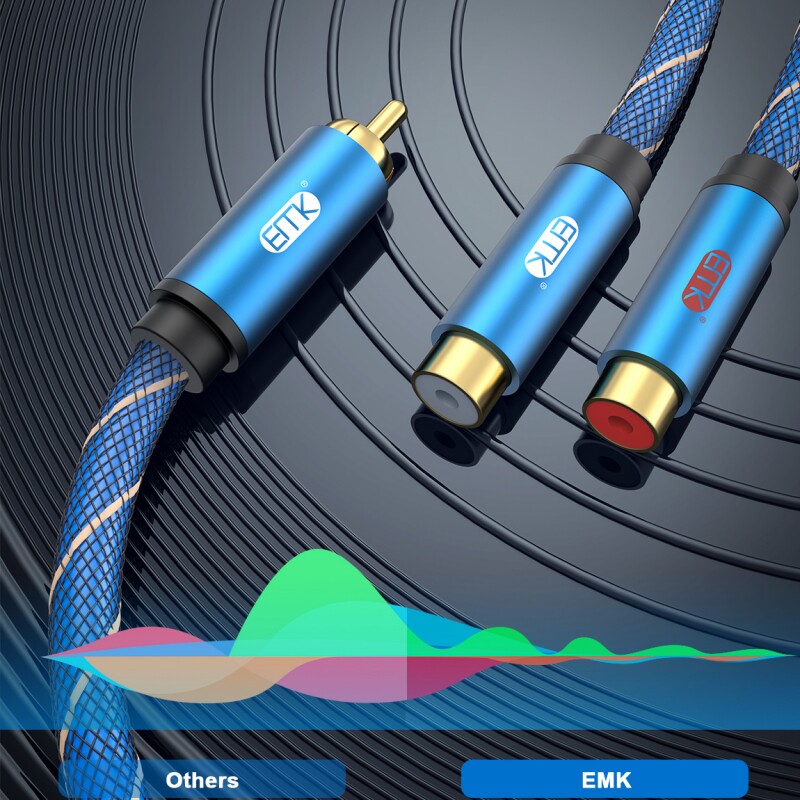 EMK 镀金RCA莲花头一分二音频线汽车音响改装二公转一母带屏蔽线