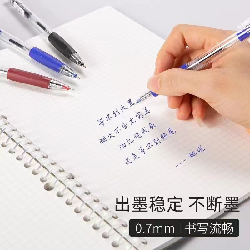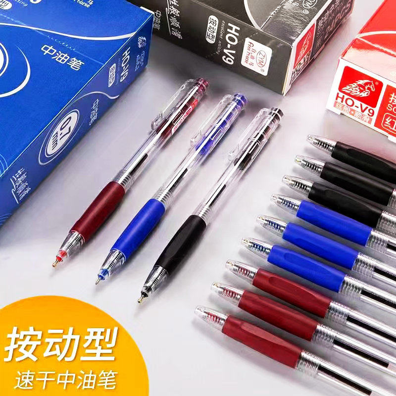 自由马V9超滑中油笔 按动圆珠笔原子笔 红黑蓝色办公 24支装包邮