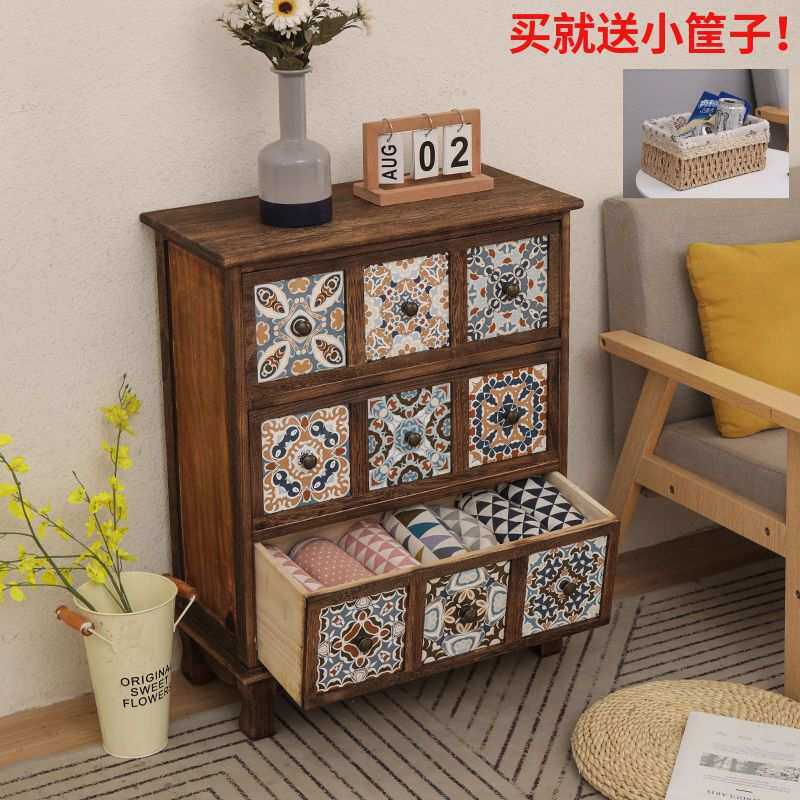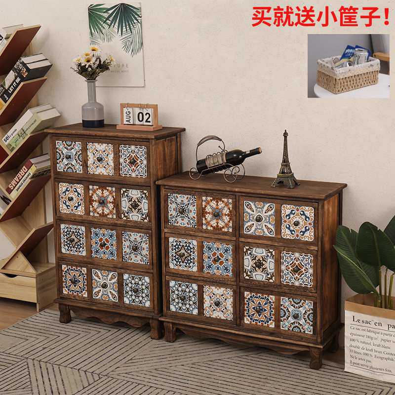 斗柜复古实木 卧室收纳柜美式黑胡桃色家用客厅木质储物柜