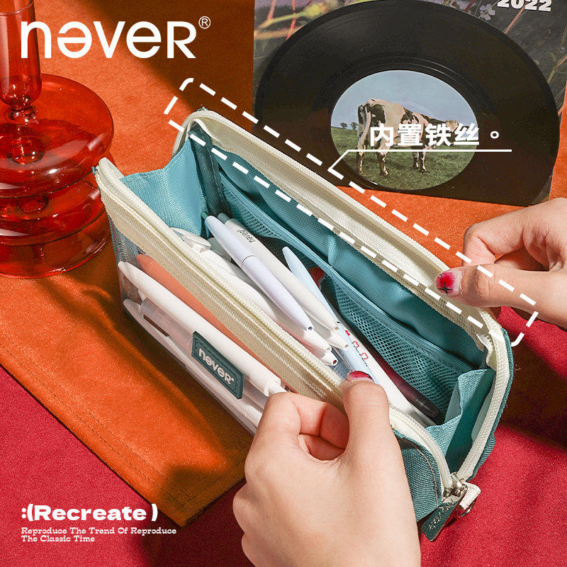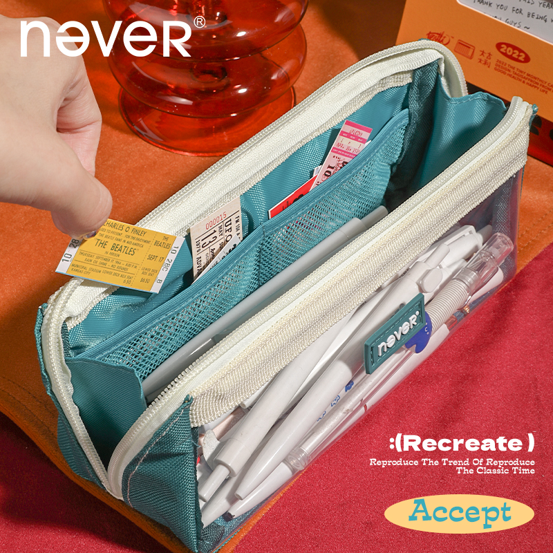 「巨能装」never笔袋3.0大容量ins日系透明女孩男孩学生复古风