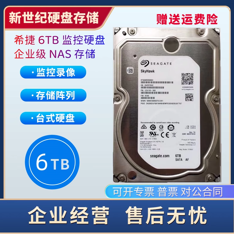 希捷6TB企业级硬盘6t 256M 6tb台式家用NAS阵列6TB监控硬盘
