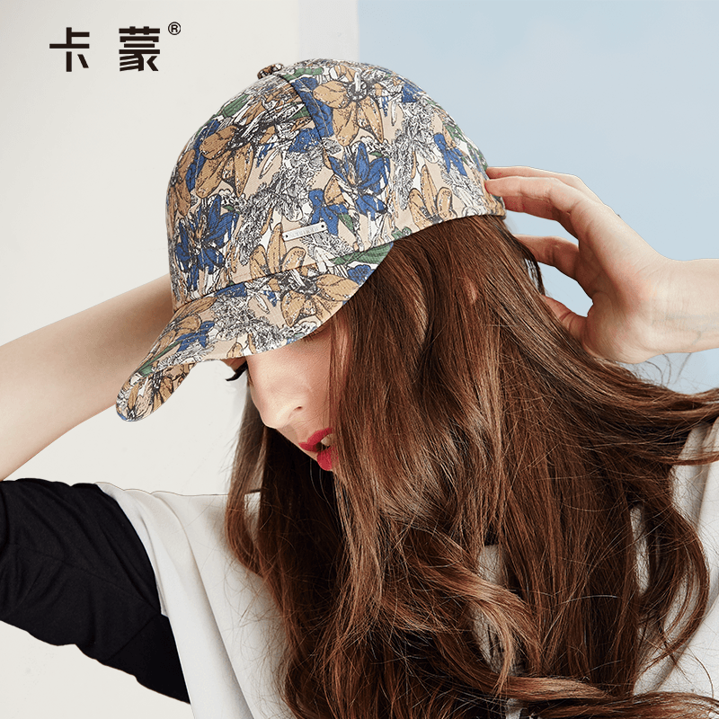 卡蒙时尚韩版碎花棒球帽女潮夏棉质街头百搭鸭舌帽大头围休闲帽子