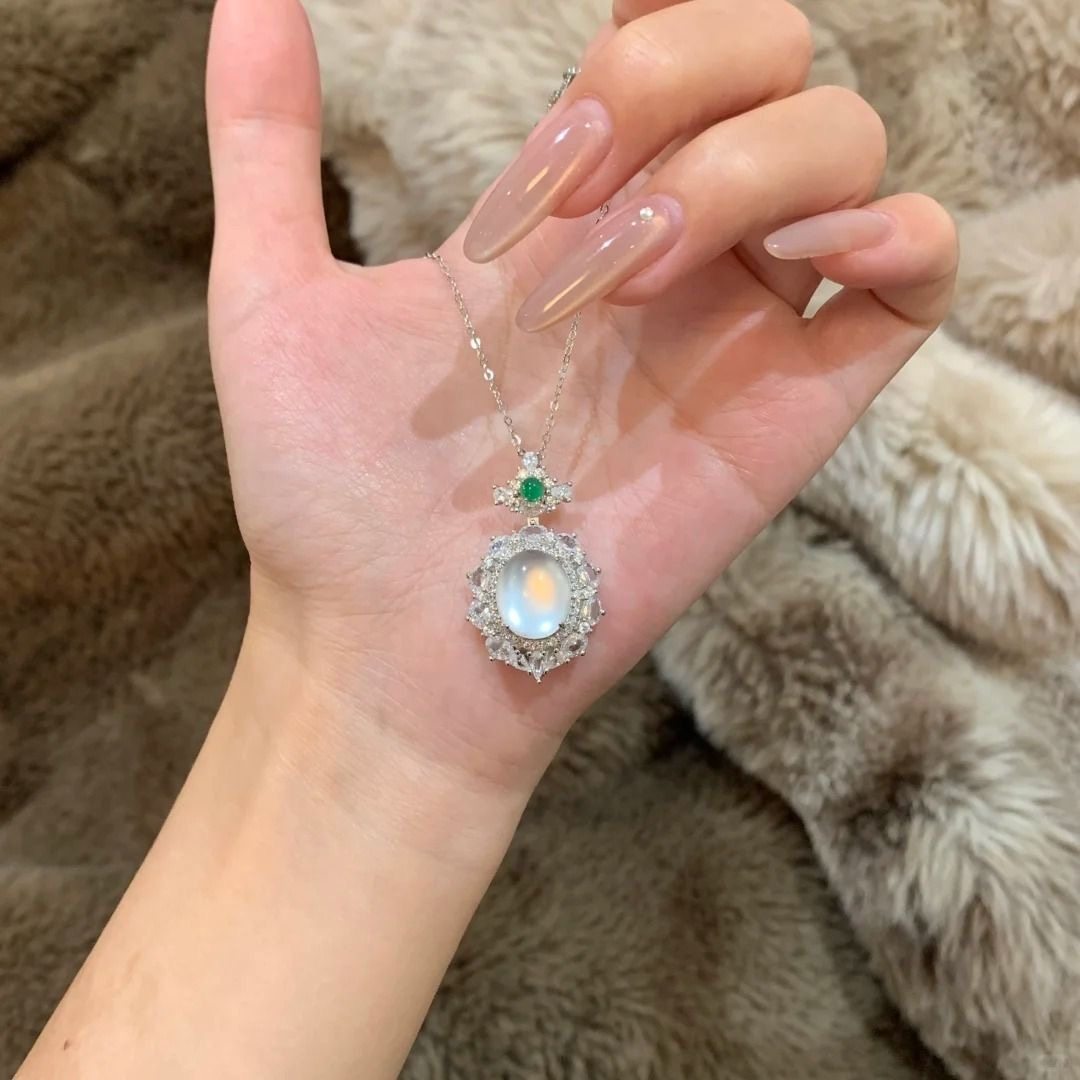 新中式满钻冰透魔镜小吊坠项链女小众气质颈链高颜值奢华锁骨链