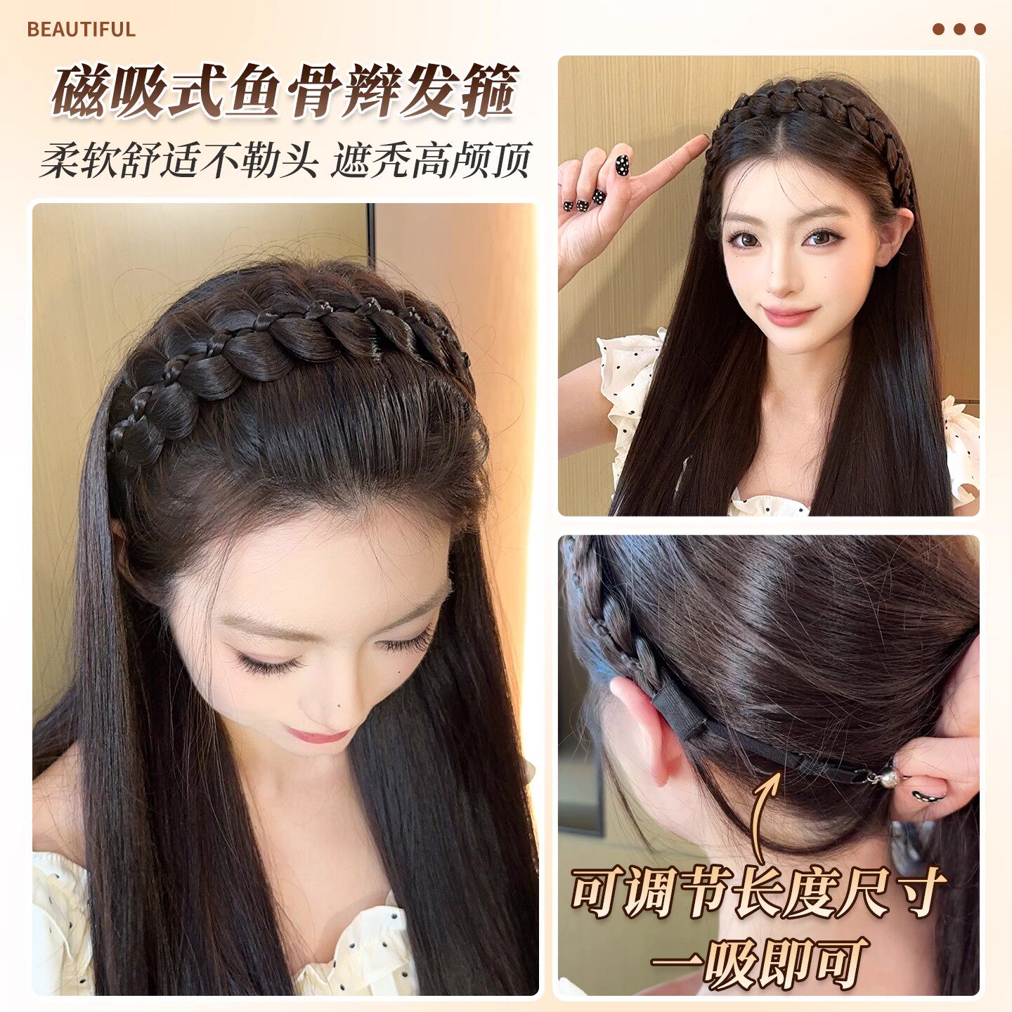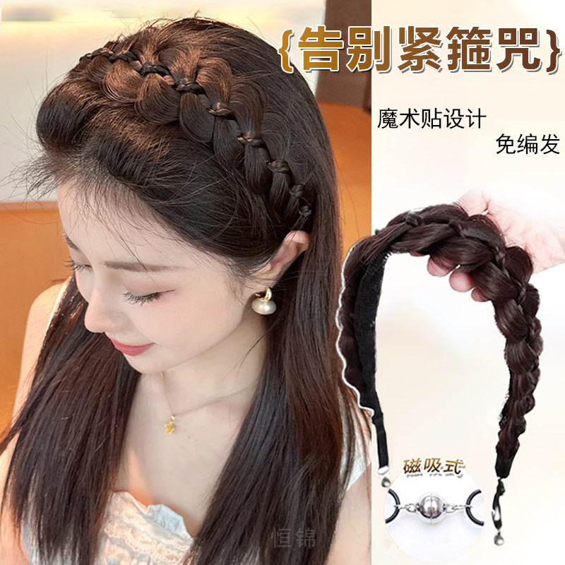 磁吸式鱼骨辫发箍假发女麻花辫长辫子高颅顶遮发缝压发箍刘海编发