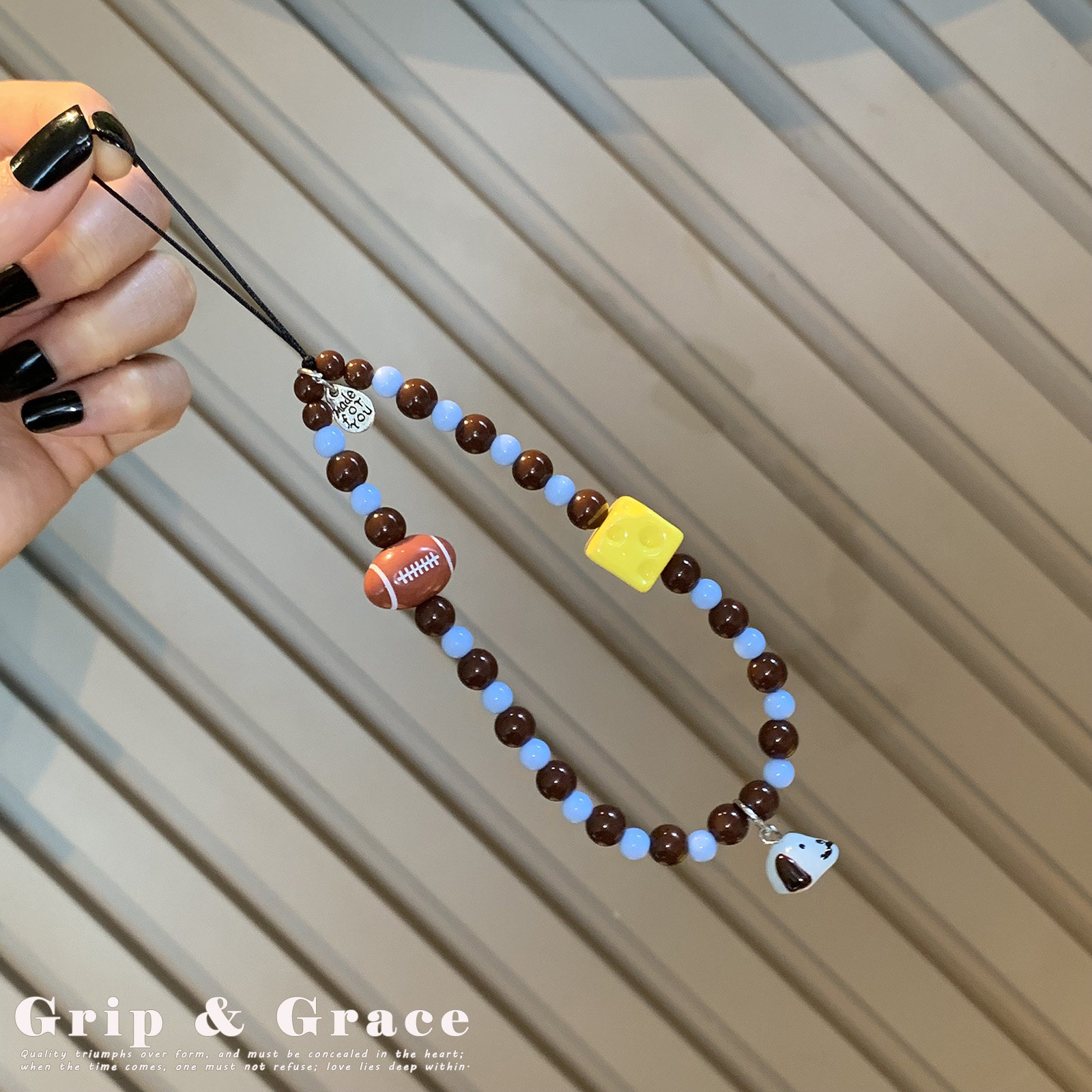 原创相机挂件手作橄榄球小众手机挂绳手机链便携挂绳防丢手机挂件