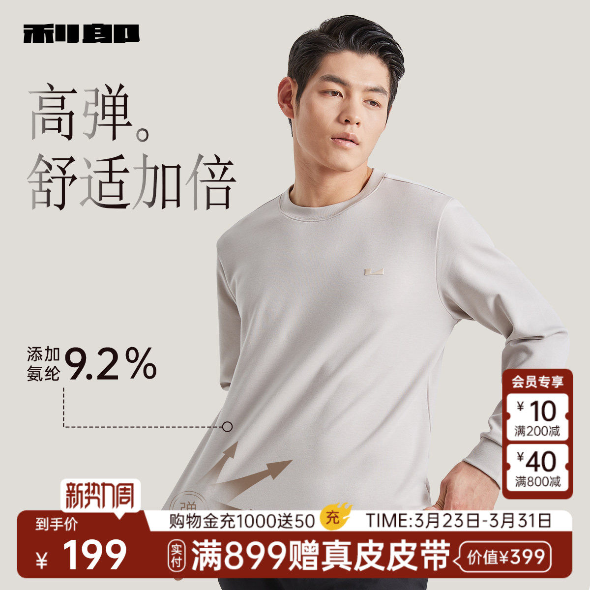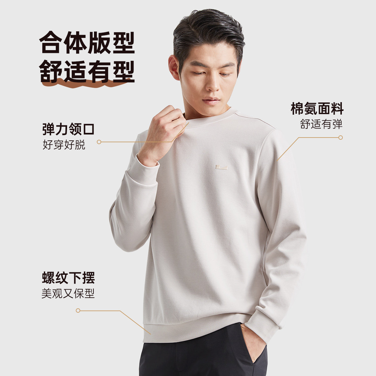 利郎官方 卫衣男士商务休闲高级感打底衫2026春秋新款长袖T恤男装