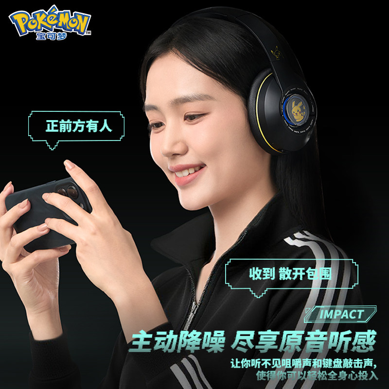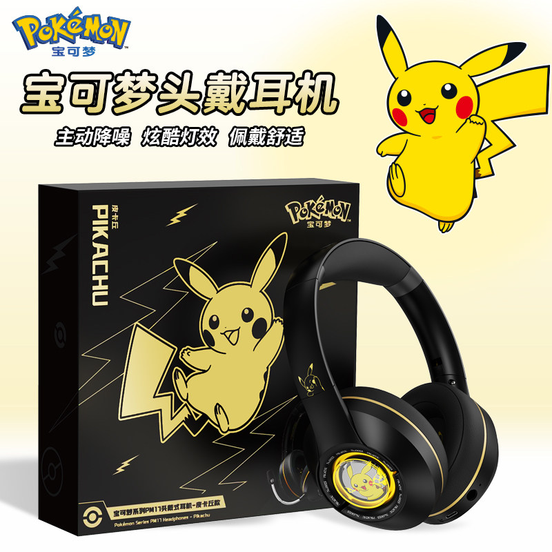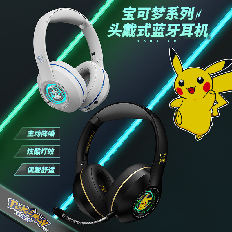 宝可梦皮卡丘头戴式蓝牙耳机无线主动降噪男女游戏耳麦送情侣礼物