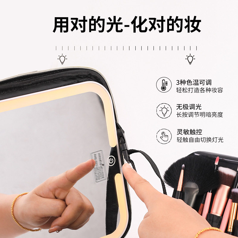 加高款化妆包可充电化妆箱led灯带镜子手提式大容量高级感收纳包