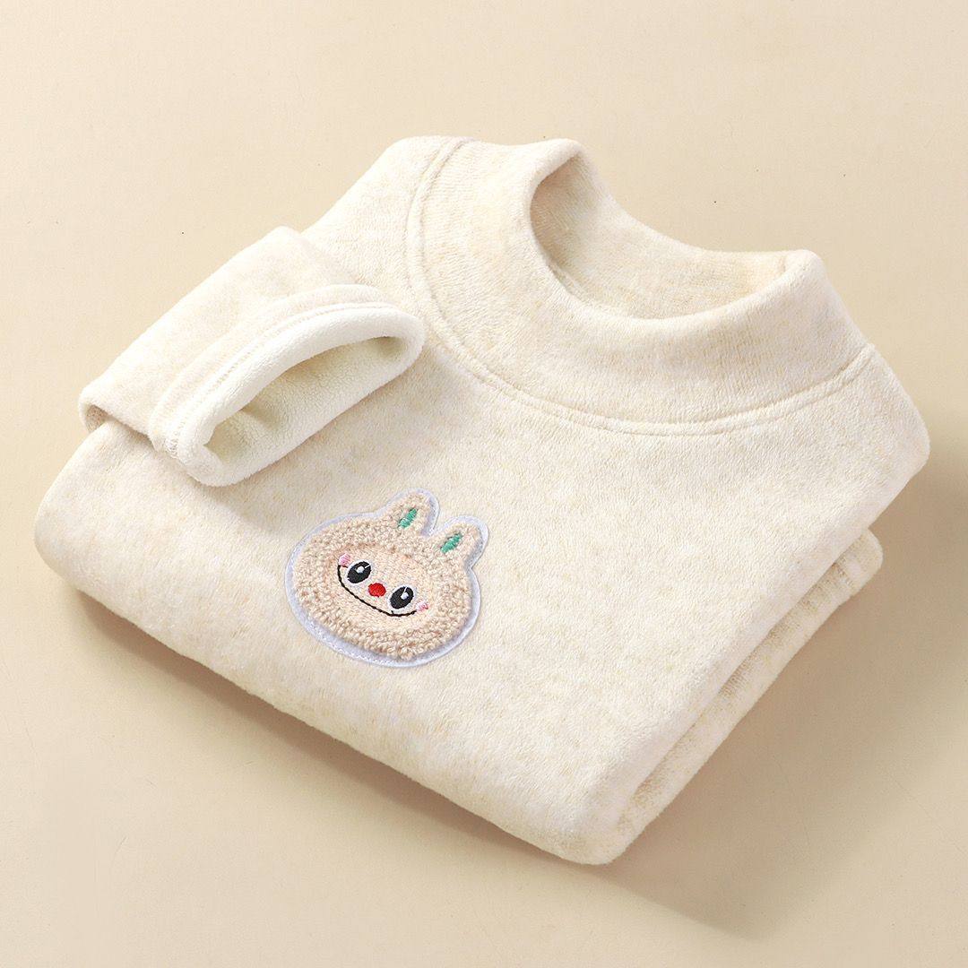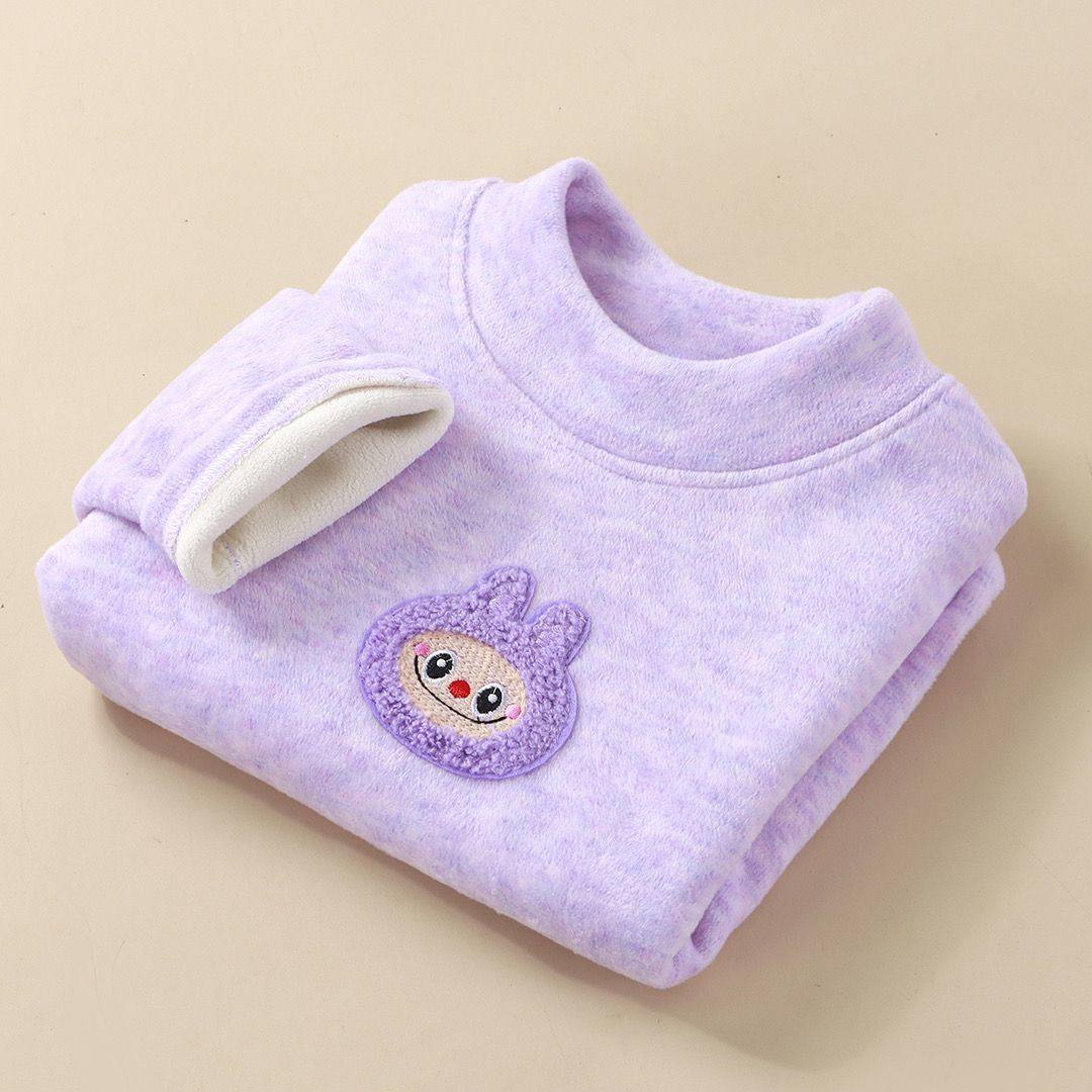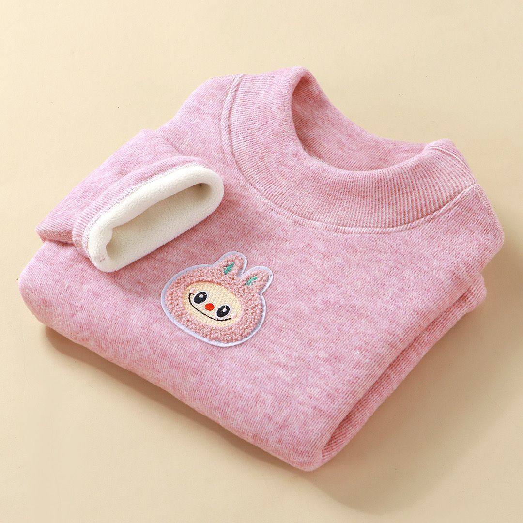 德绒打底衫女童羊毛蚕丝儿童加绒加厚保暖上衣宝宝一体绒半高领