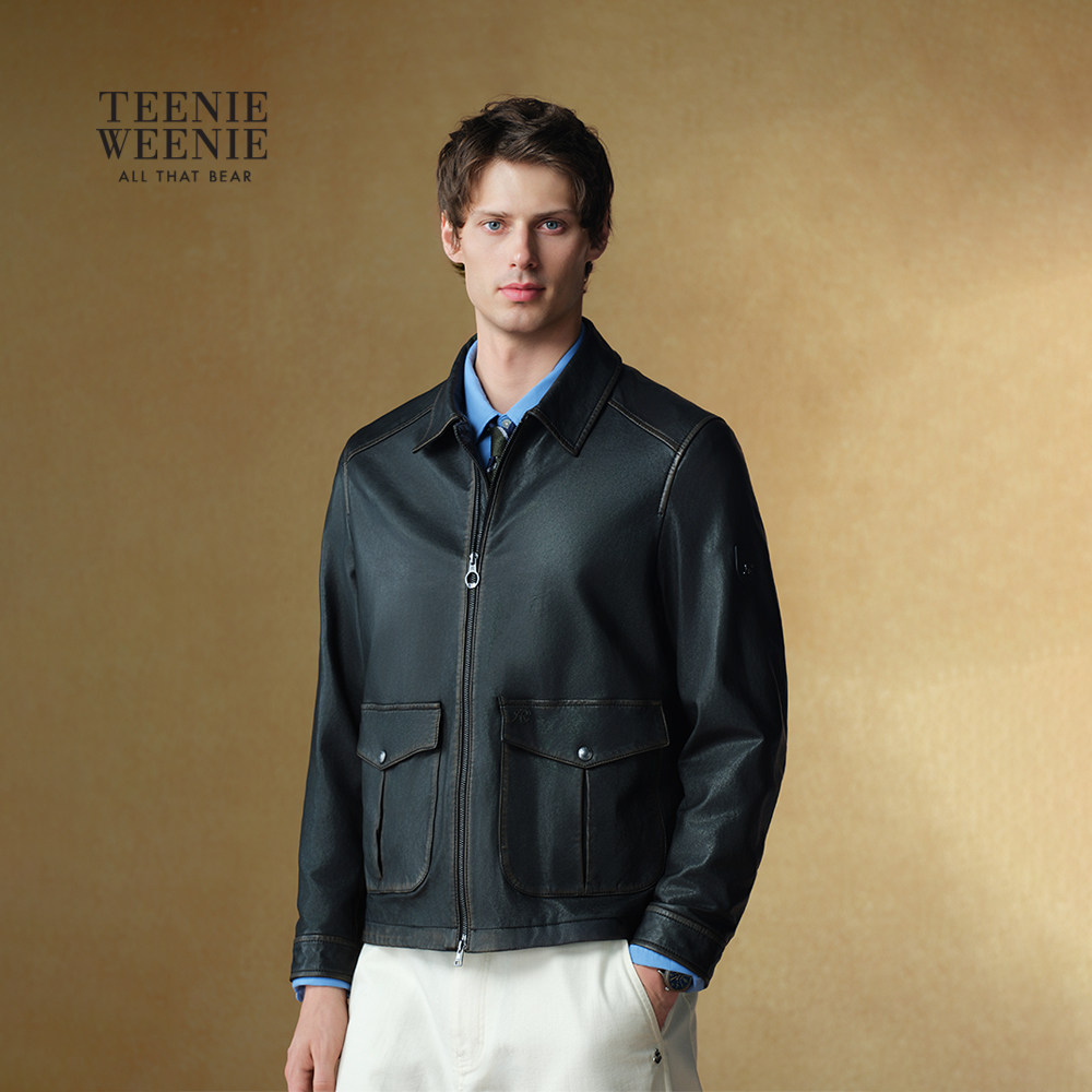【T.W.R.C】TeenieWeenie小熊男装皮衣25秋冬立领机车风外套twrc