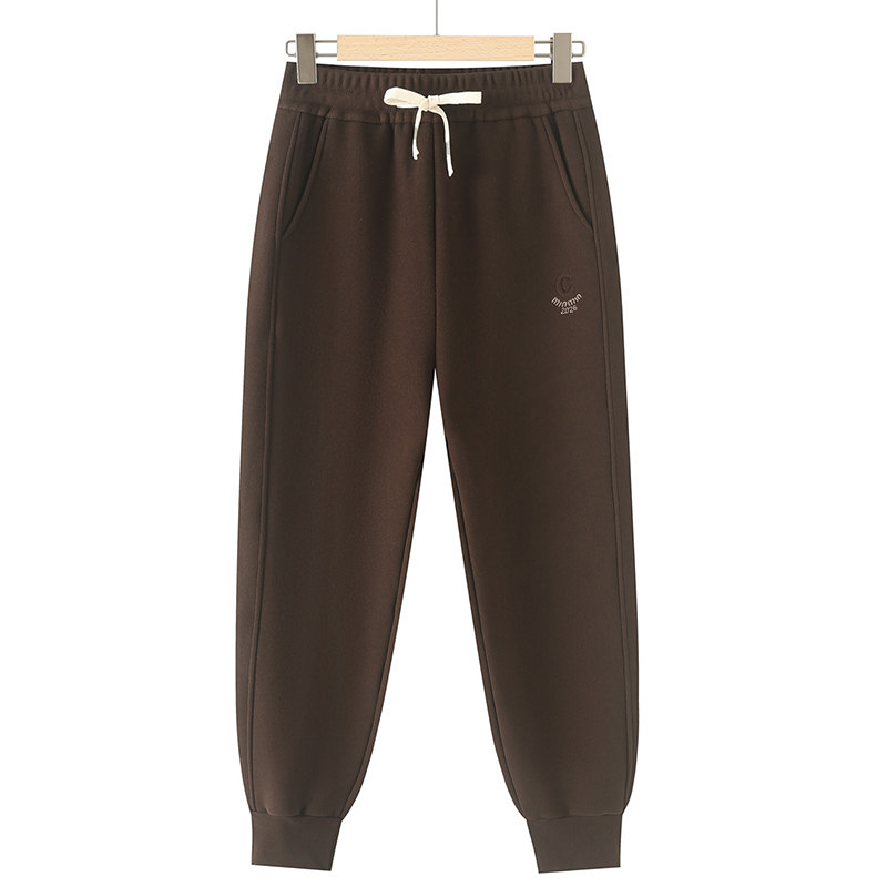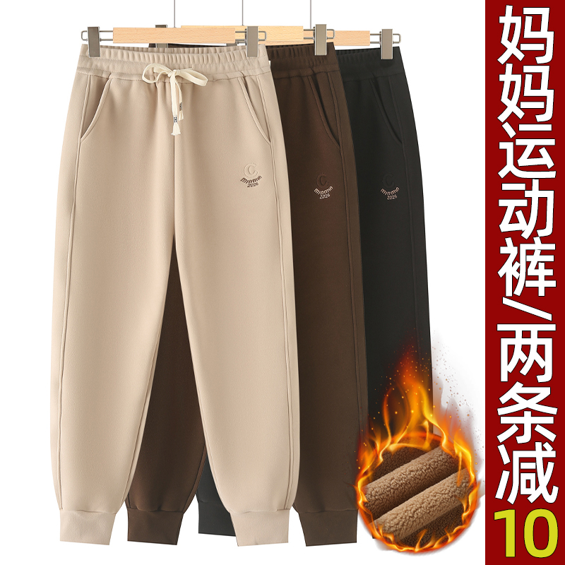妈妈裤子秋冬休闲弹力卫裤中老年人女裤加绒运动裤羊羔绒新款黑色
