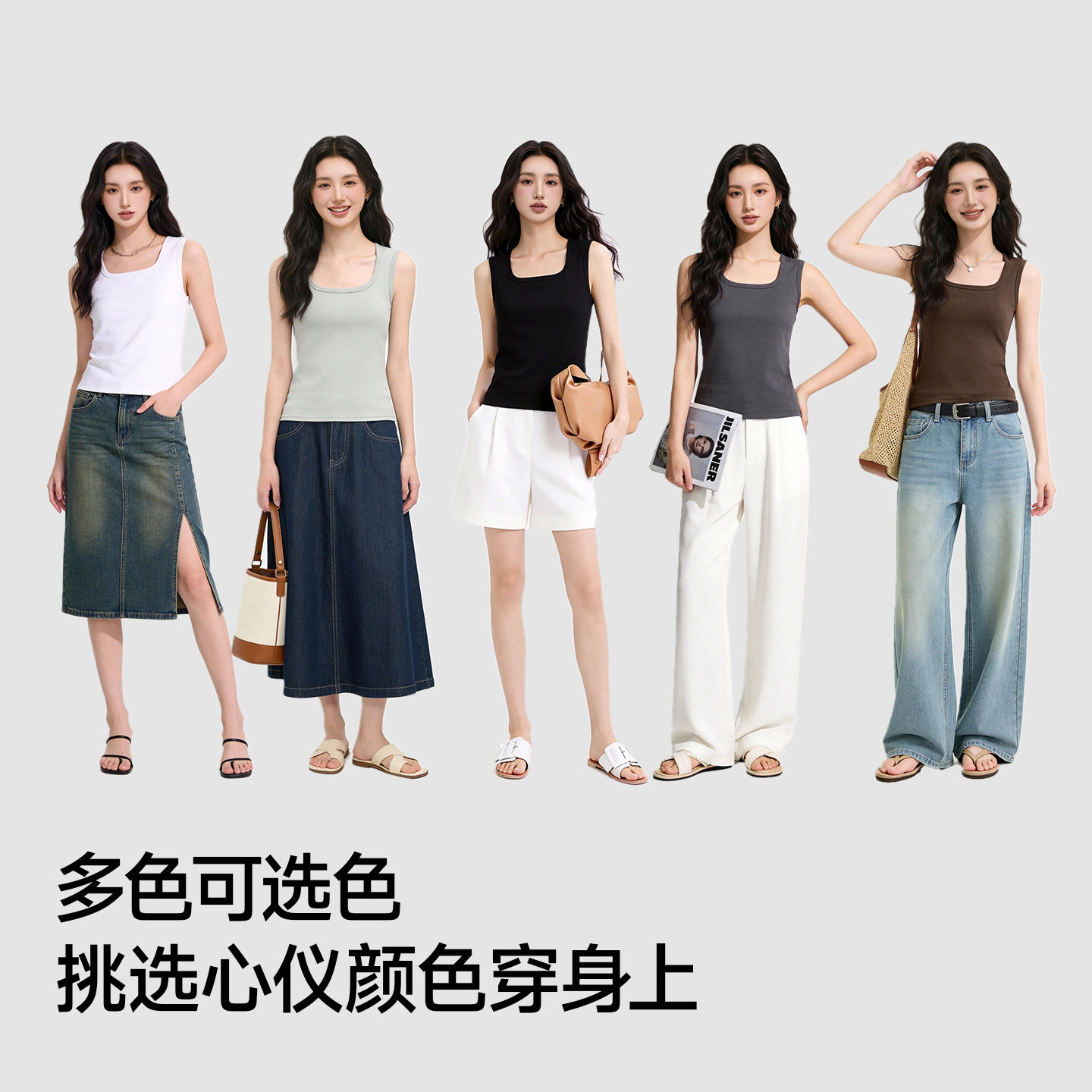 莫代尔吊带背心女夏薄款纯色无袖打底衫修身百搭简约内搭U领上衣