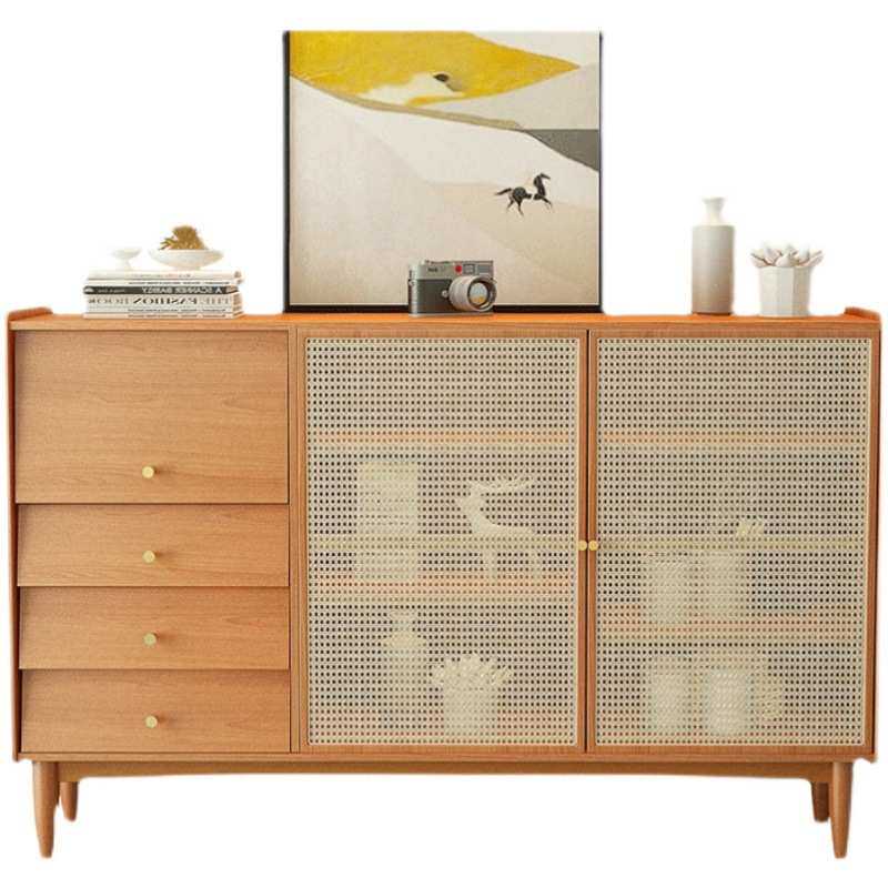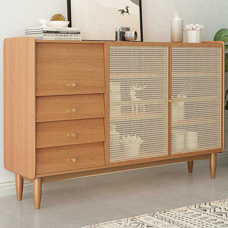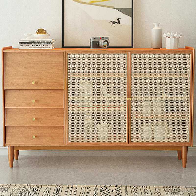 北欧实木餐边柜 家用客厅藤编收纳储物柜厨房日式碗柜茶水柜