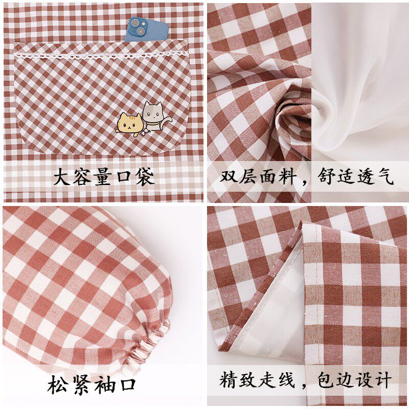 新款棉布耐磨围裙长袖厨房家用防污罩衣透气围腰做饭上班工作服女
