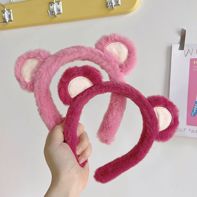 可爱草莓熊毛绒洗脸发箍女秋冬外出甜美防滑压发时尚头箍发卡头饰