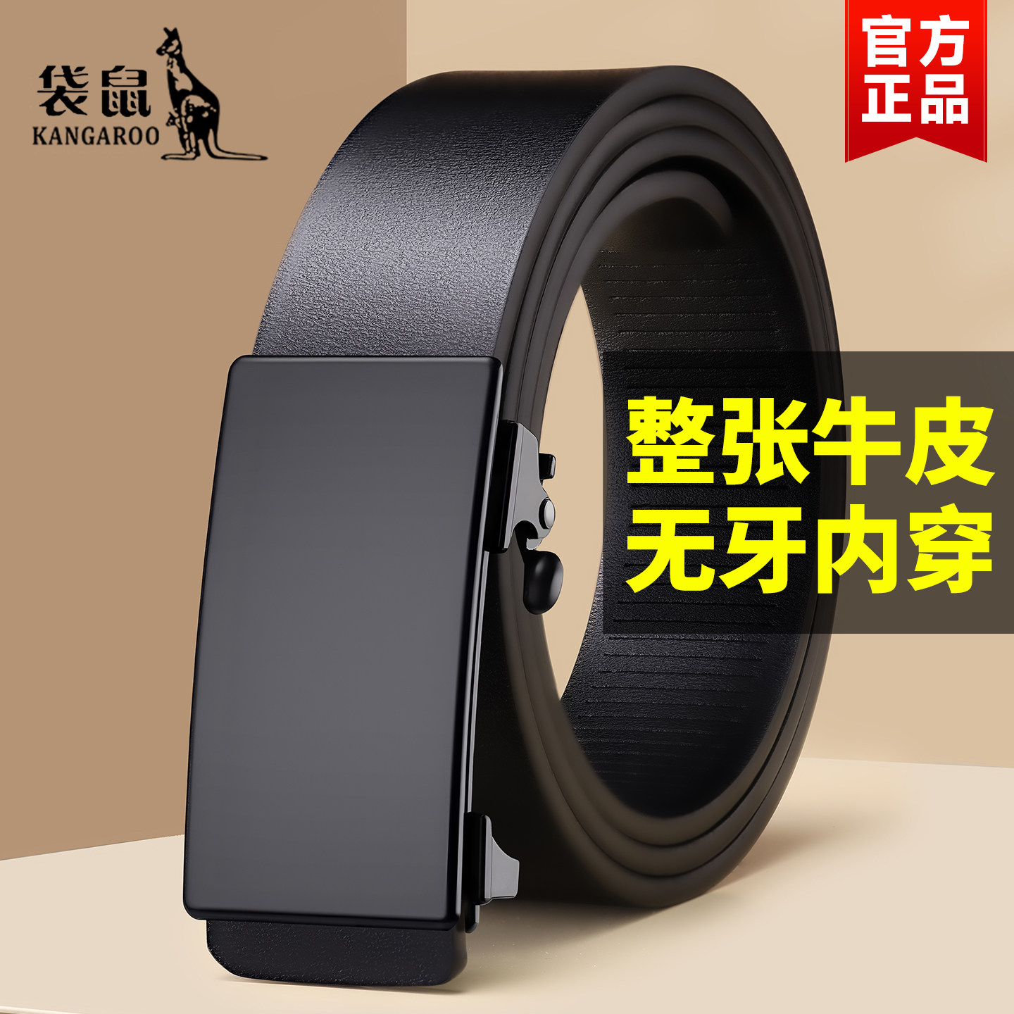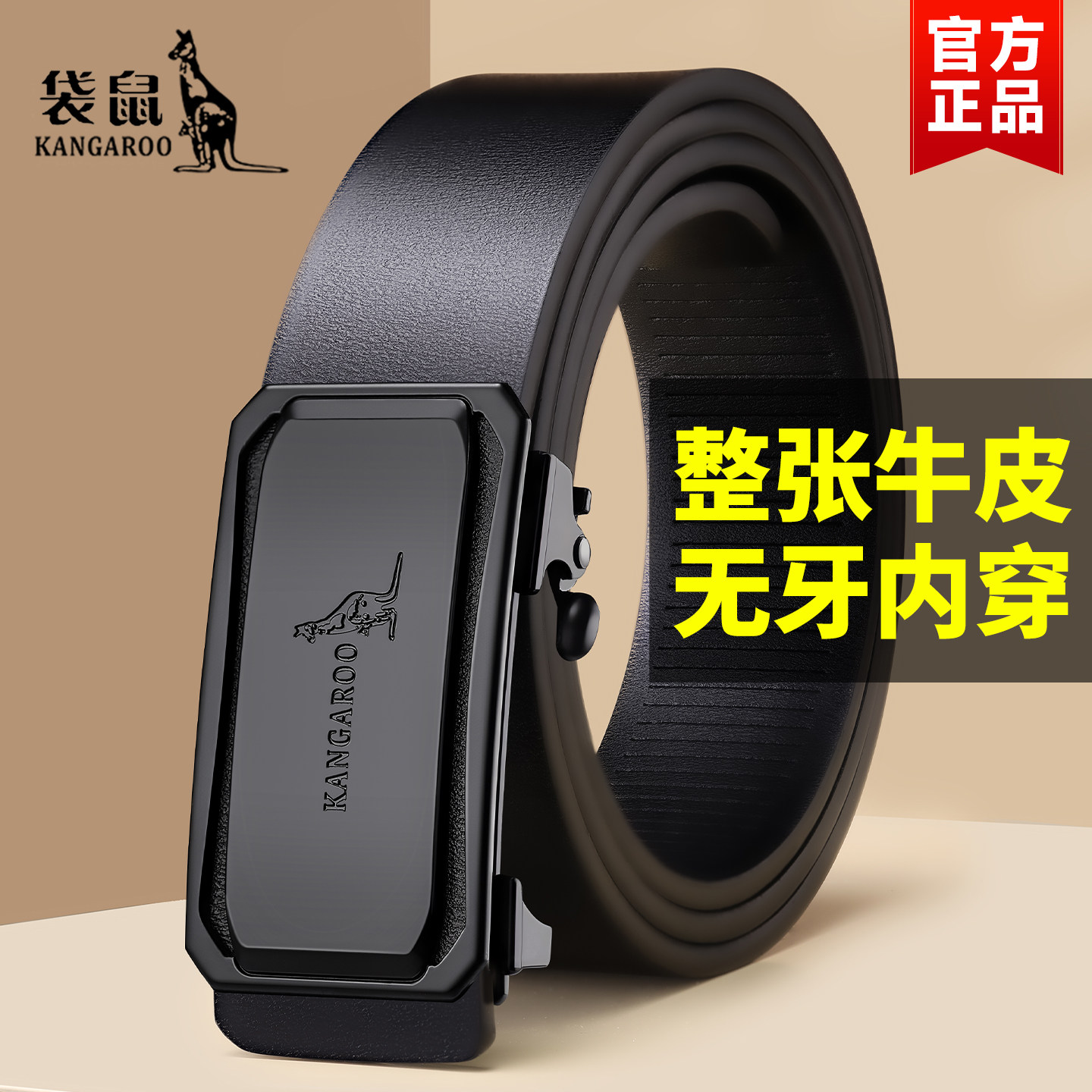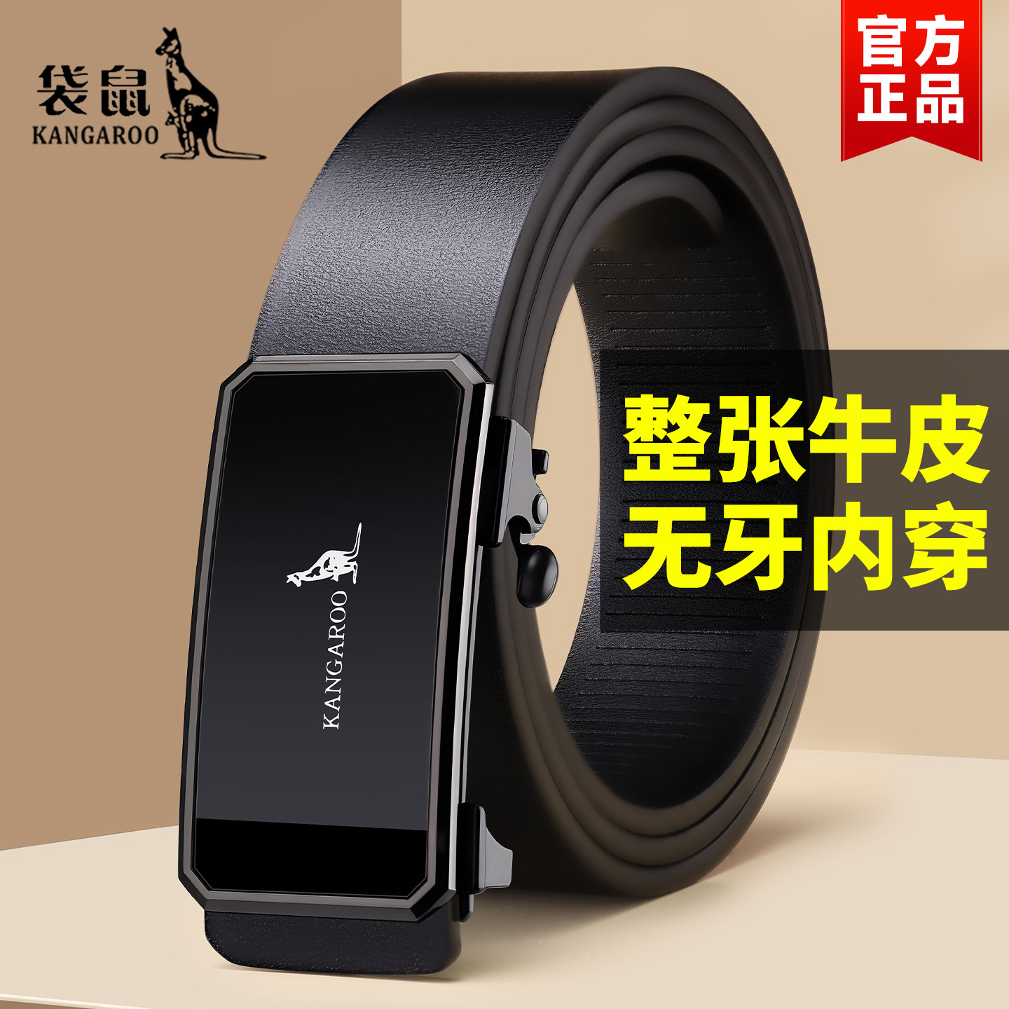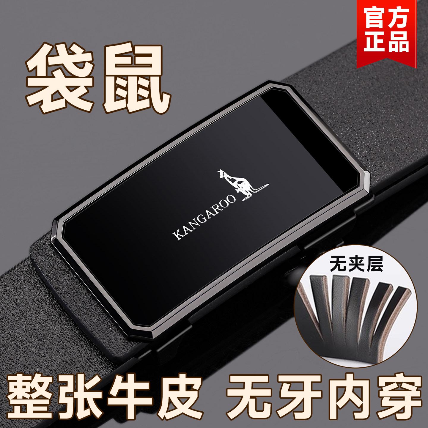 袋鼠正品优质整张牛皮腰带质保十年断裂换新