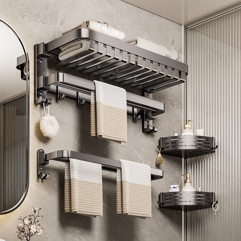 卫生间壁挂收纳架套装枪灰色浴室置物架免打孔洗手间墙上卫浴挂件