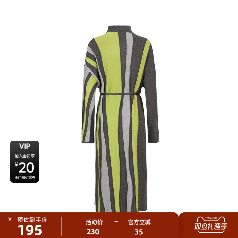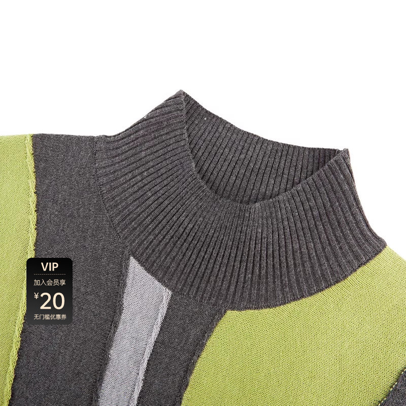 sdeer圣迪奥女装秋罗纹圆领撞色收腰针织连衣裙S24181209