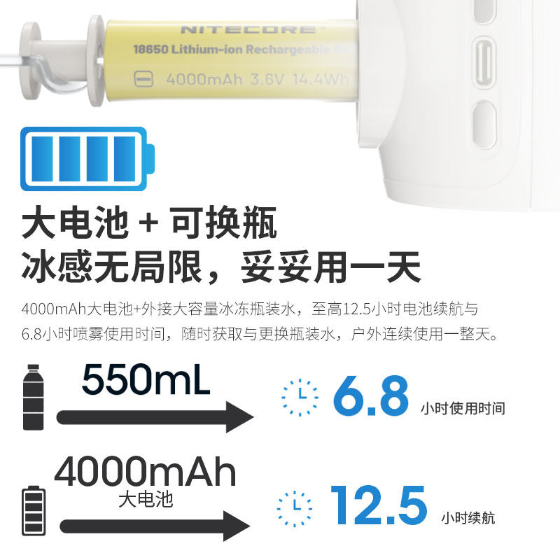 [喷雾风扇]NITECORE奈特科尔风扇izzcool10小型喷雾降温加湿小风扇桌面手持空调扇便携式usb充电随身风扇新款