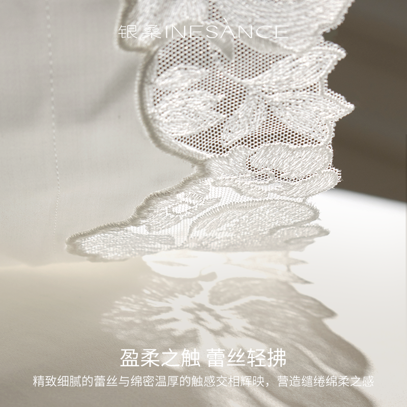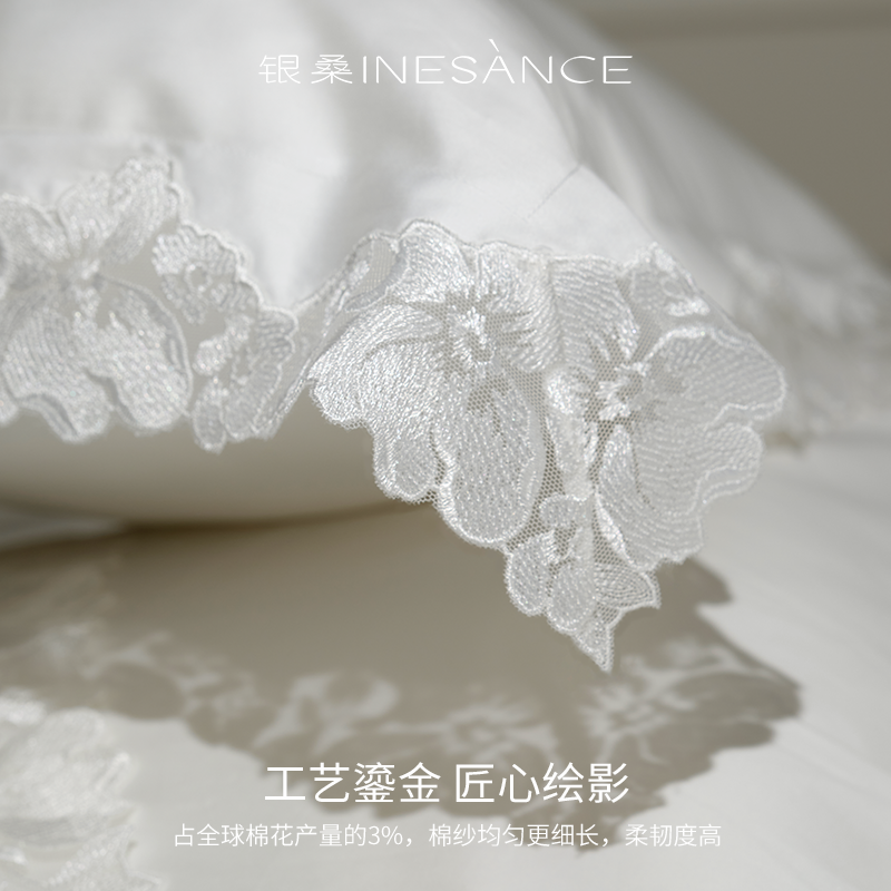 银桑INESANCE长绒棉全棉四件套纯棉床上用品床单法式蕾丝被套枕套
