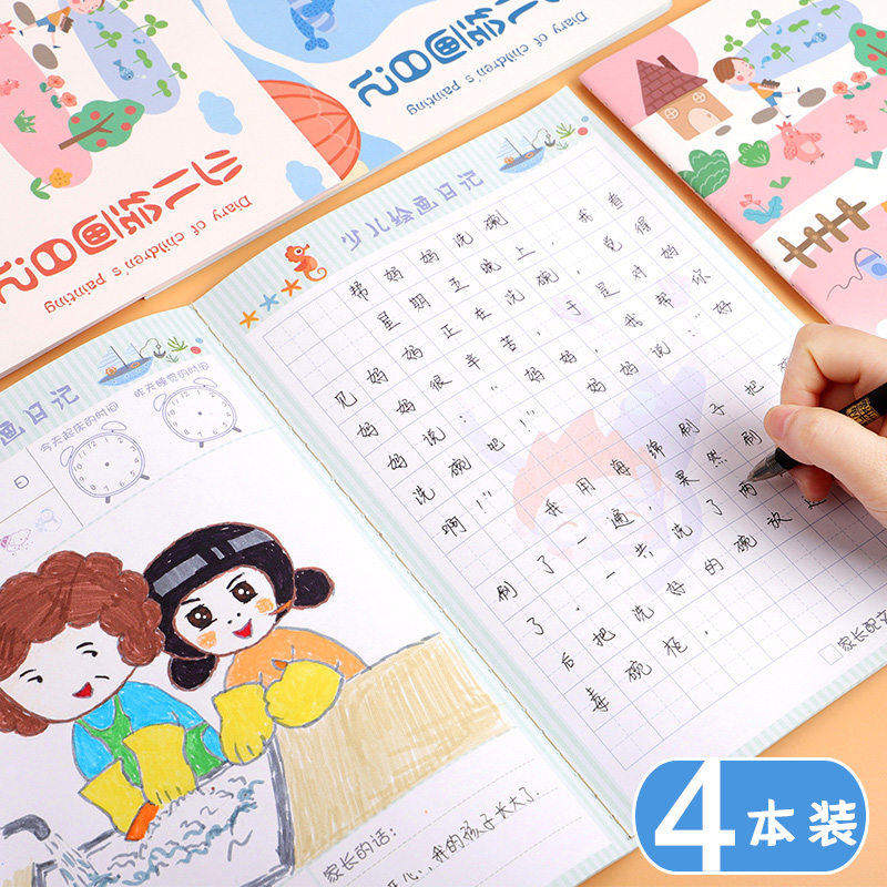 儿童写画日记B5少儿绘画日记本一二年级小学生田字格画图周记本