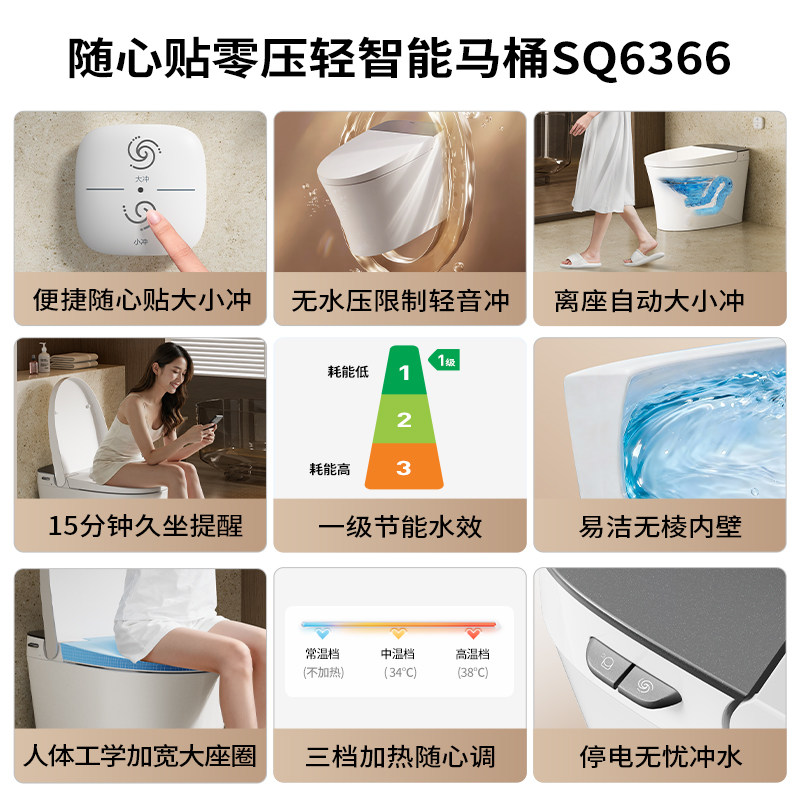九牧轻智能马桶坐便器座全自动电动小户型尺寸家用冲洗加热SQ6366
