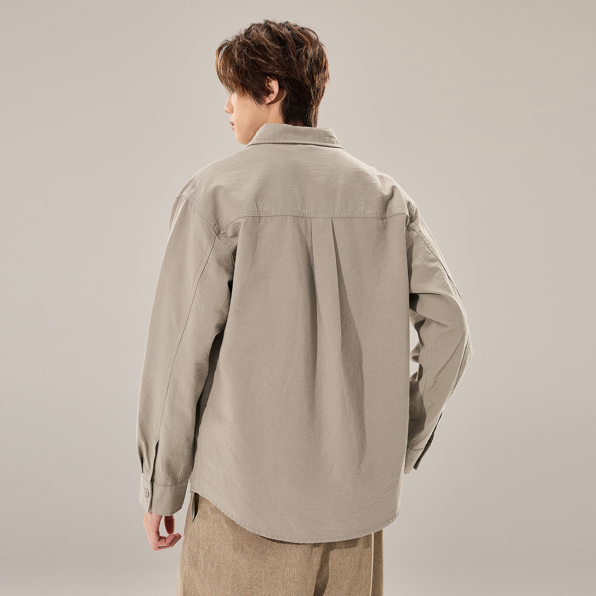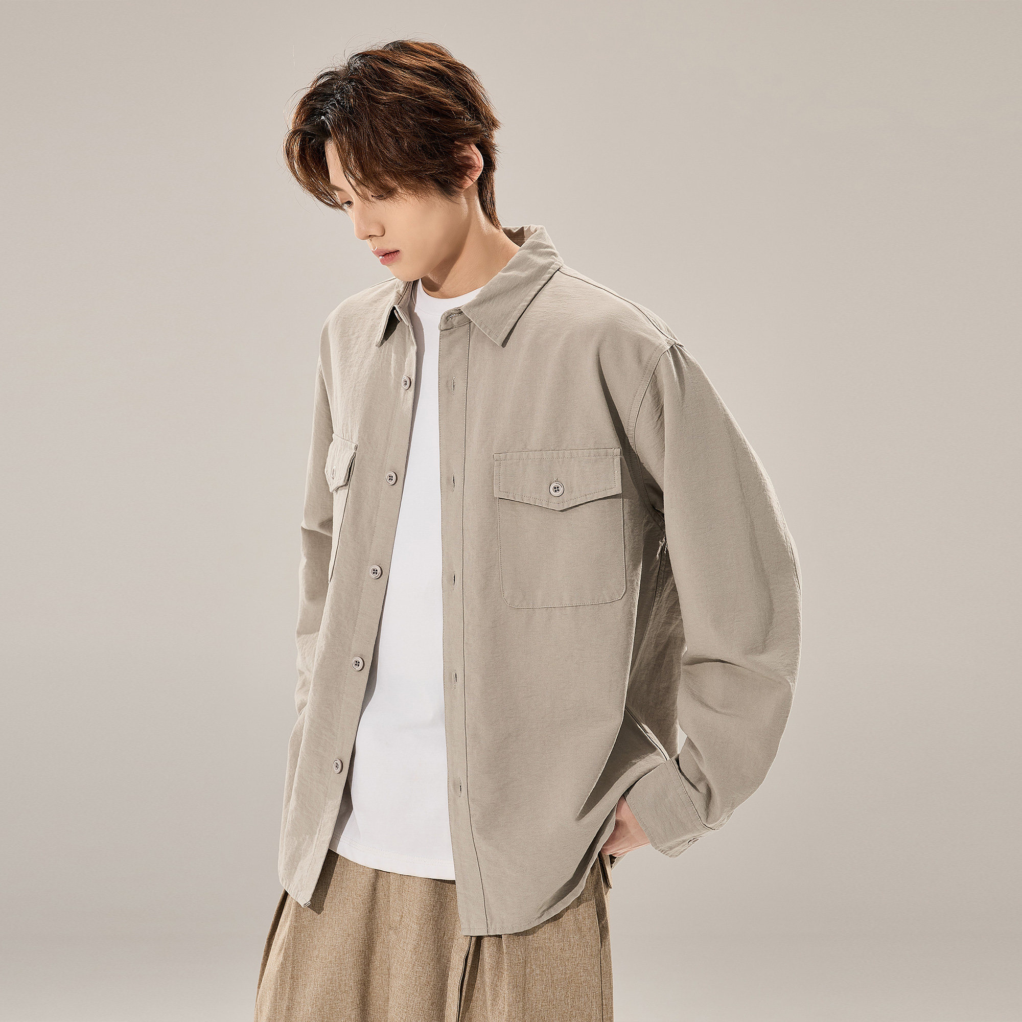 森马长袖衬衫男宽松工装外套情侣款纯色百搭上衣纯棉秋装潮酷流行