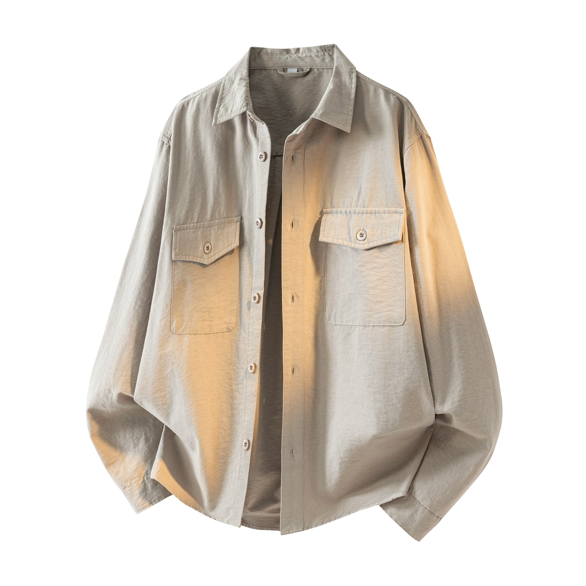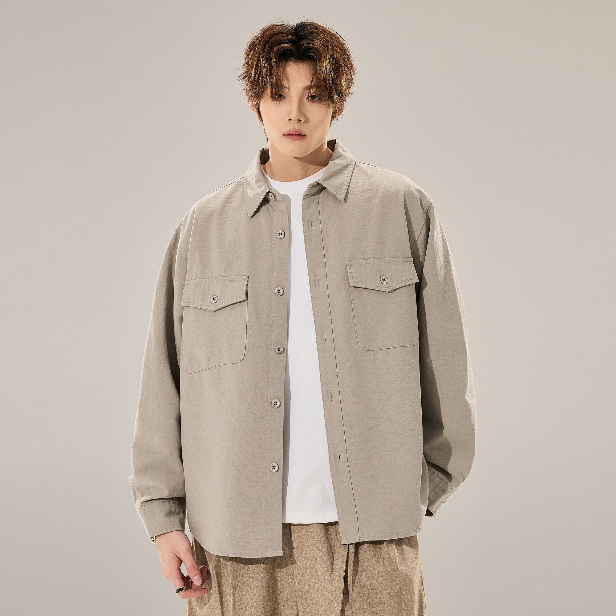 ALLIN 纯色长袖衬衫男春秋季衣服休闲高级感外套情侣工装通勤衬衣