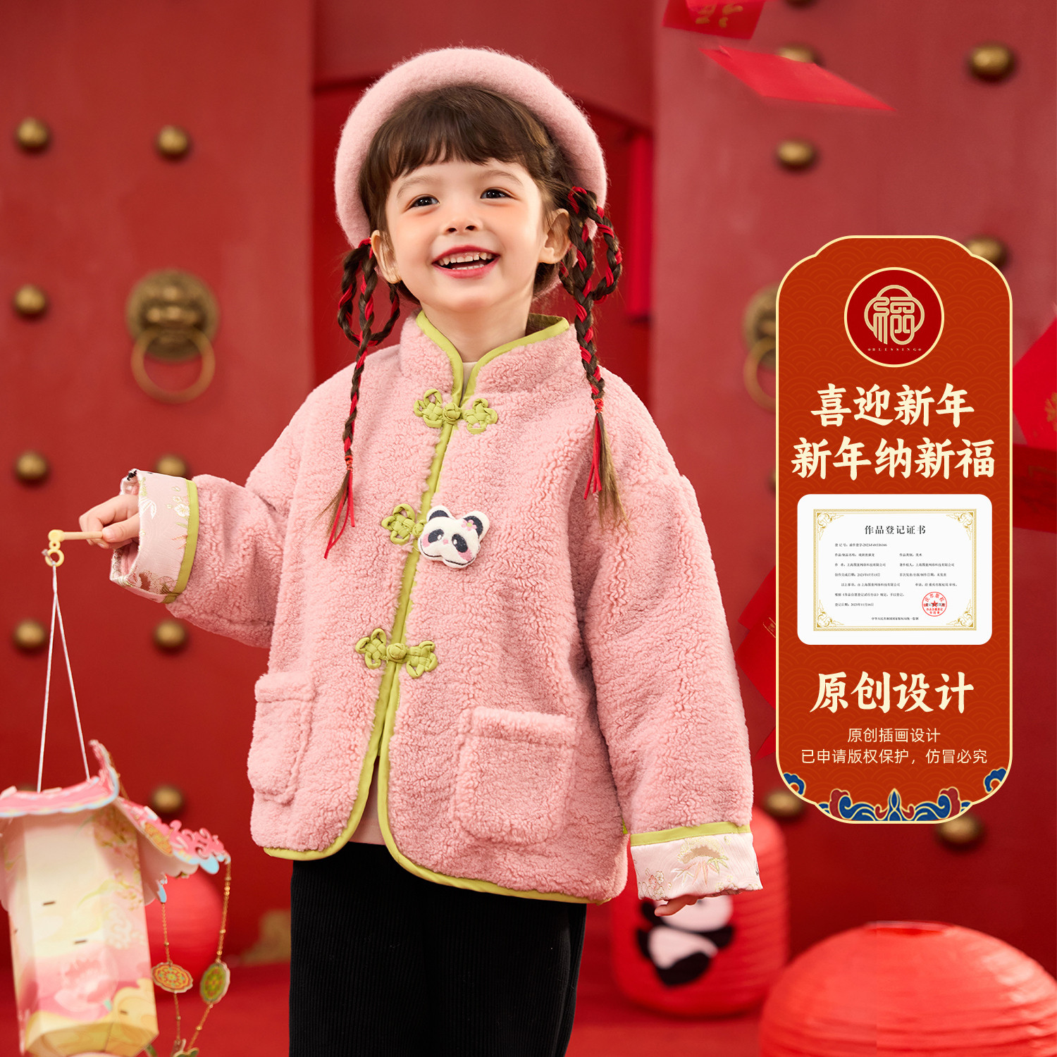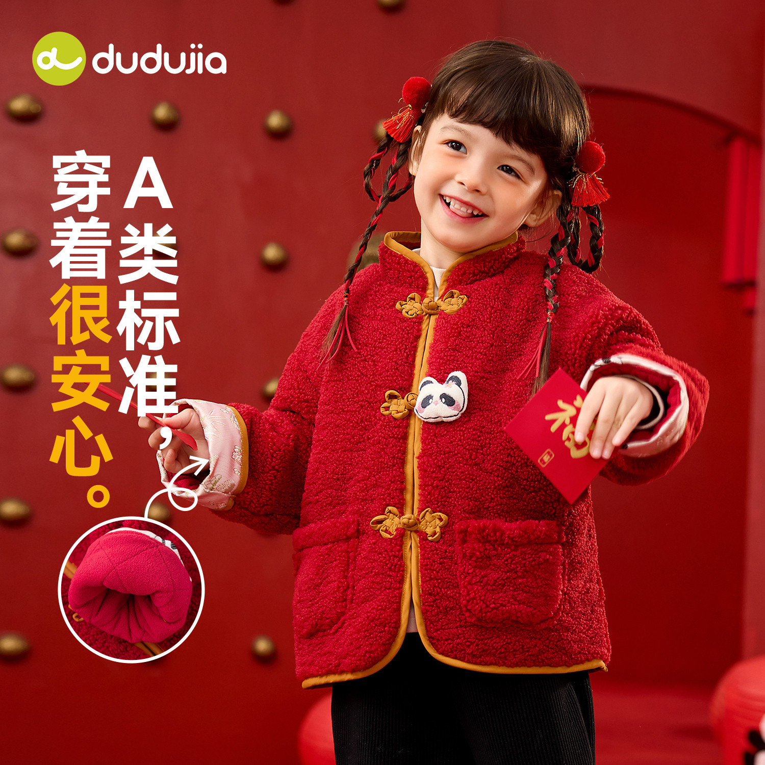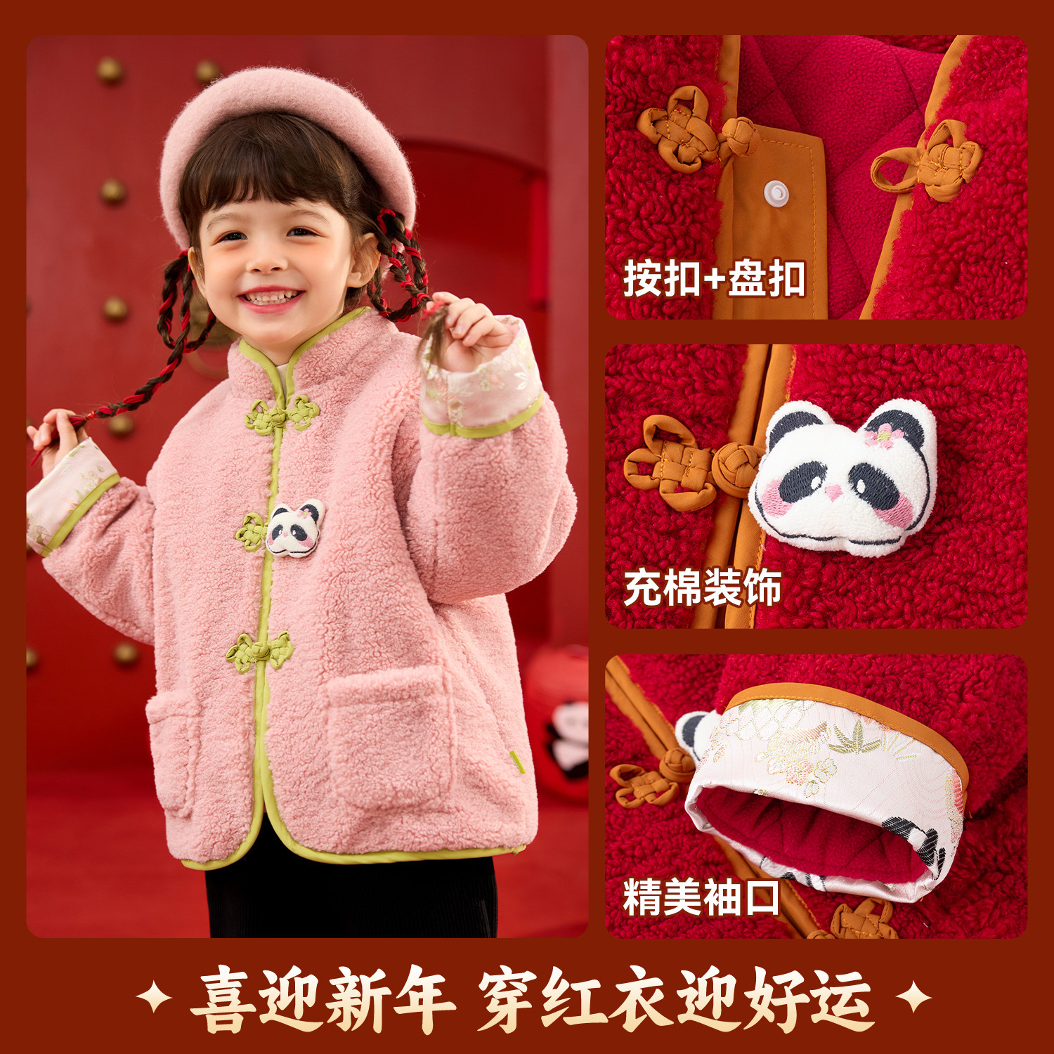 【双面绒】嘟嘟家女童拜年服新年红色唐装外套喜庆儿童冬宝宝上衣
