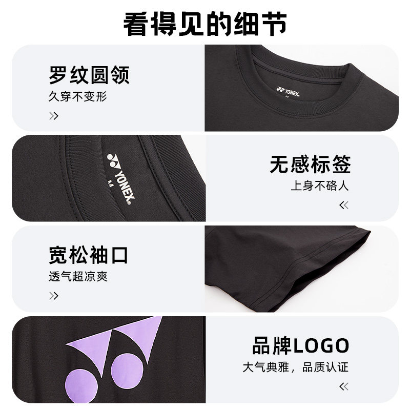 YONEX尤尼克斯羽毛球服运动服比赛服男女速干短袖情侣上衣网球t恤