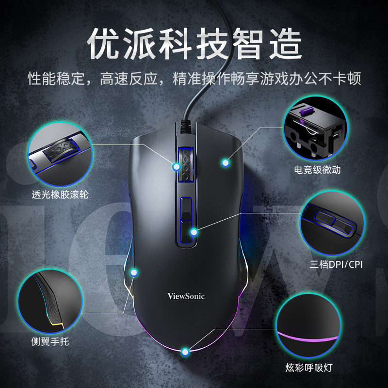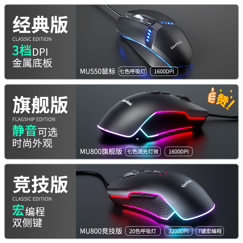 优派有线鼠标电竞游戏通专用宏静音无声电脑家用办公吃鸡lol机械