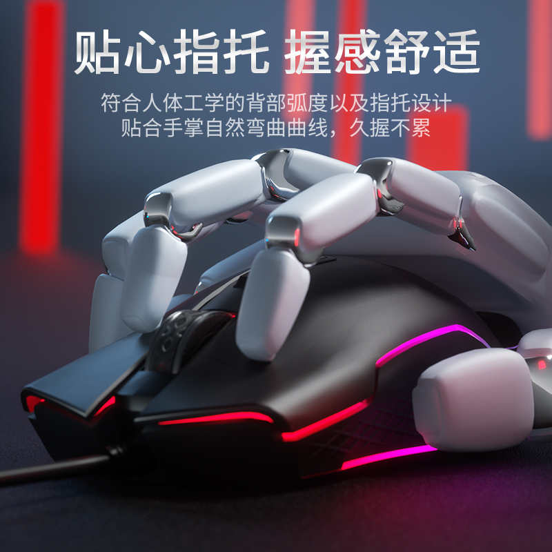 英菲克PW1有线鼠标静音游戏电竞机械宏办公usb台式笔记本电脑专用
