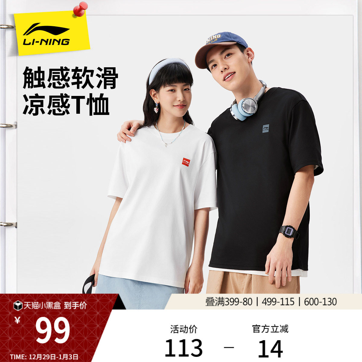 李宁短袖男士官方夏季半袖简约盐系情侣装黑色体恤纯棉运动T恤女