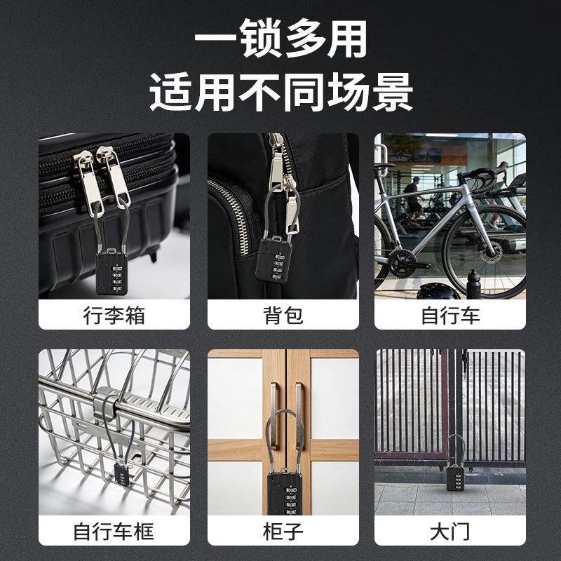 钢丝锁密码锁挂锁自行车防盗头盔锁摩托车专用背包柜子健身房户外