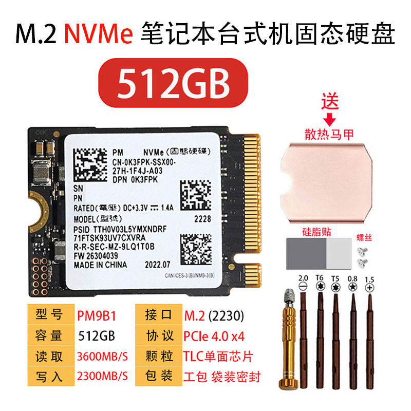 三星PM9B1 512G 2230固态硬盘M.2 PCIe4.0NVMe笔记本台式机系统盘