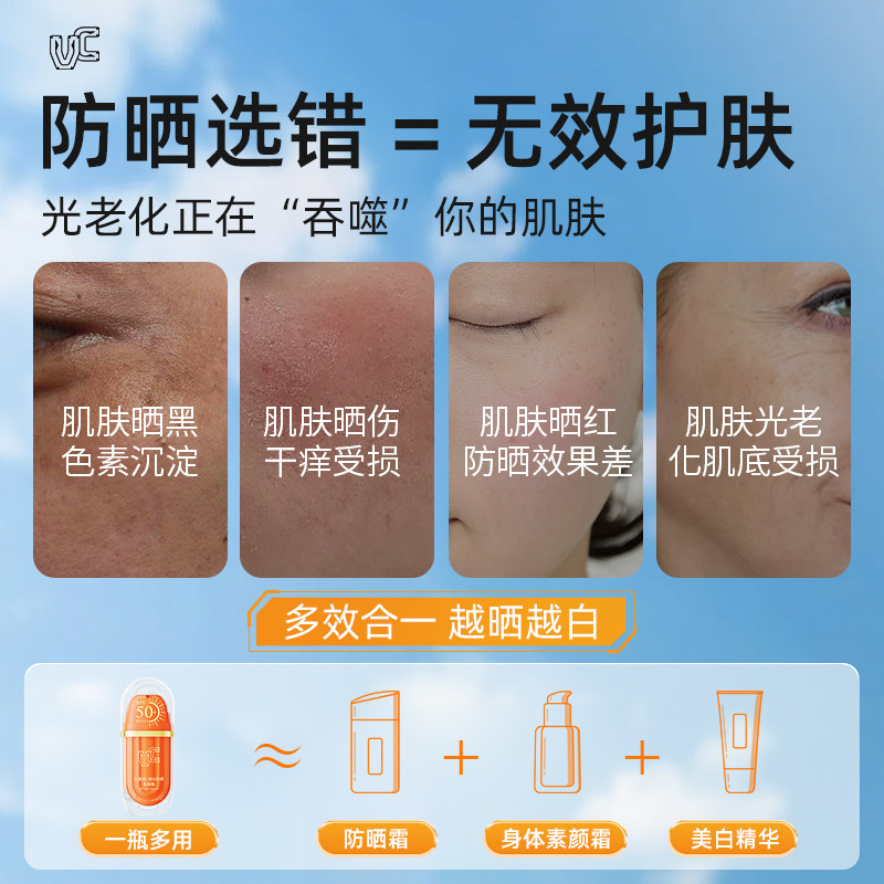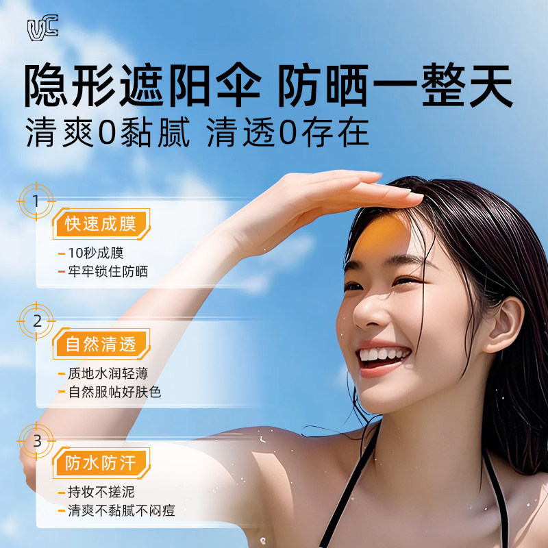 VC五重维c美白身体防晒素颜霜SPF50高倍防紫外线自然户外隔离防护