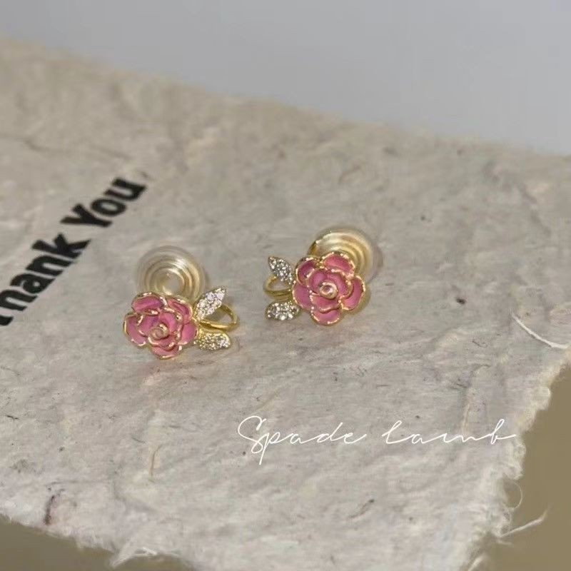 「蔷薇之名」粉色花朵耳夹无耳洞女甜美小巧气质无耳洞蚊香盘耳夹