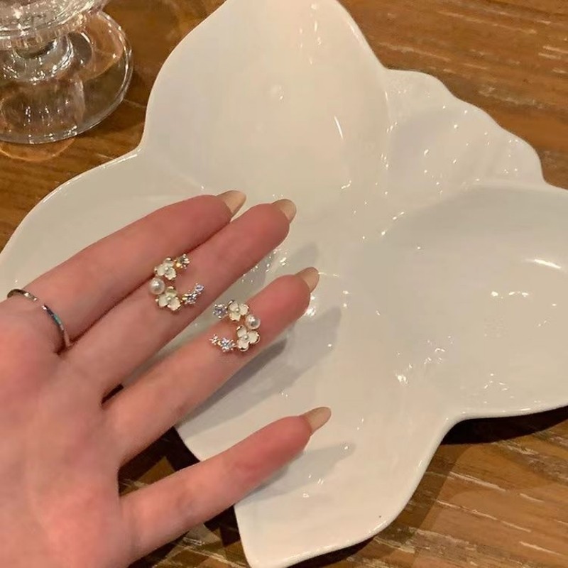 蝴蝶珍珠套装耳钉女轻奢小众高级感耳骨钉耳饰品2025新款爆款耳环