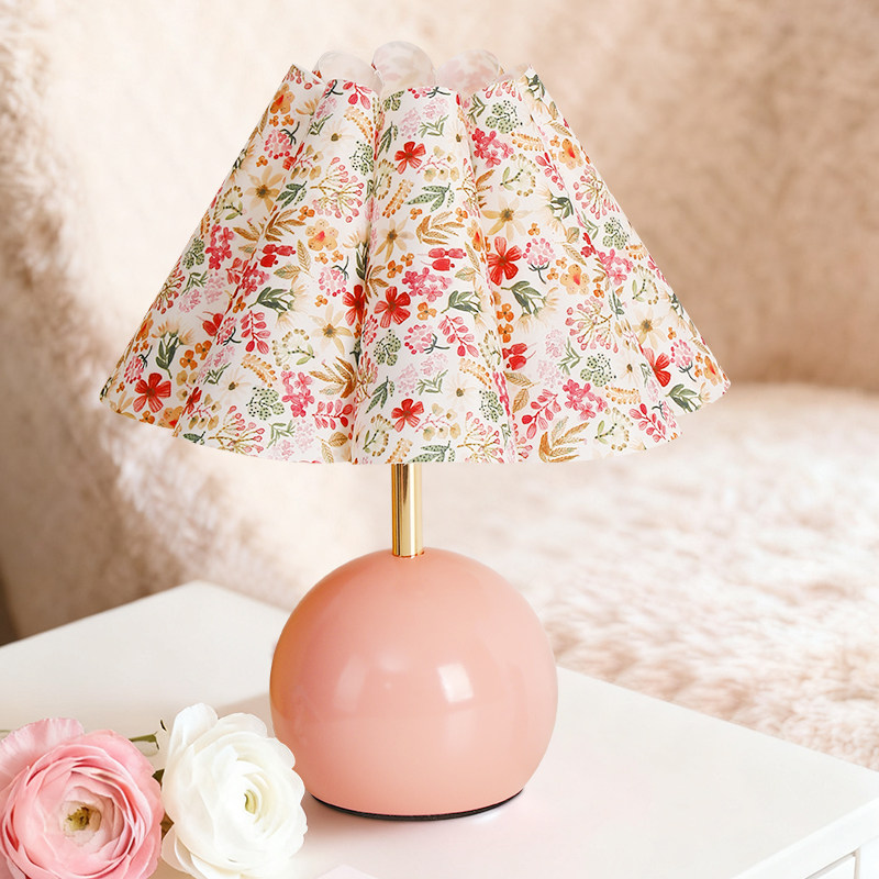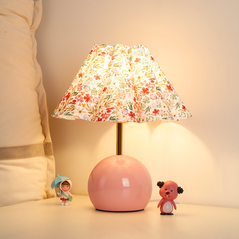 北欧奶油风少女卧室床头灯女孩公主小碎花简约现代台灯装饰小夜灯