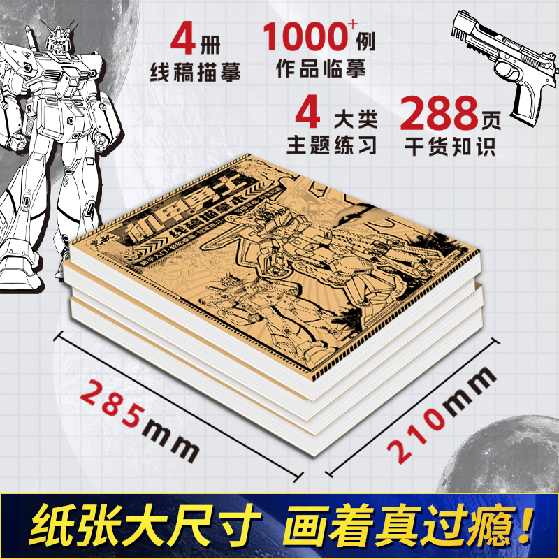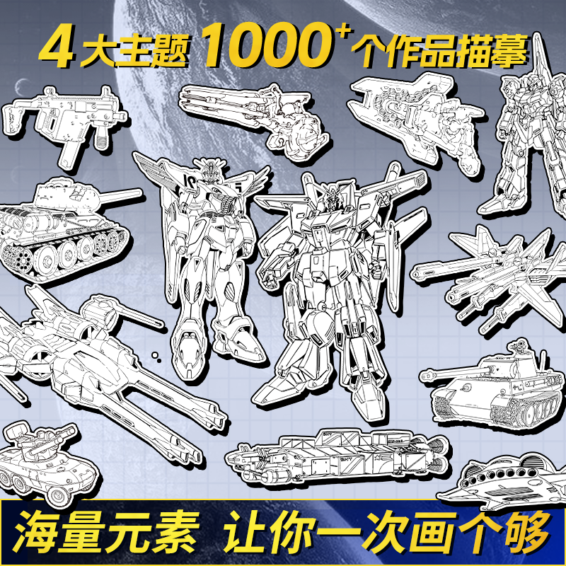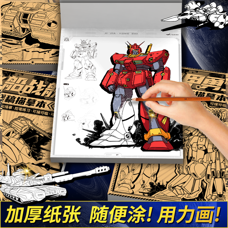 坦克机甲线稿描摹本 儿童描线涂鸦画画本 坦克战车机甲勇士飞船战舰枪械武器少儿童学生小男孩兴趣绘画练习本