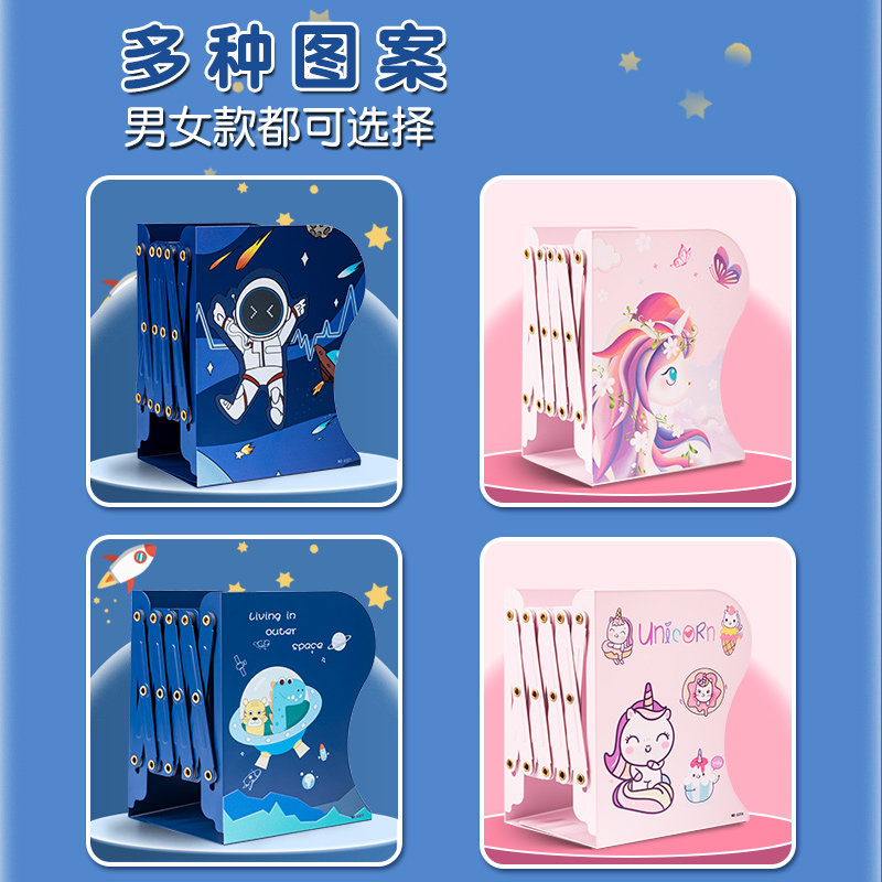 创意可伸缩书立架学生用桌面收纳金属书夹书靠伸缩书架儿童桌上立书隔书挡板铁立书架摆件高中生课桌收纳整理
