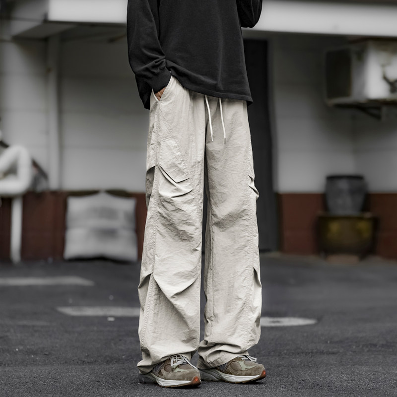 LR MADE 25SS 侧缝打褶 小弯刀垂感 碳磨洗水纯棉休闲廓形长裤
