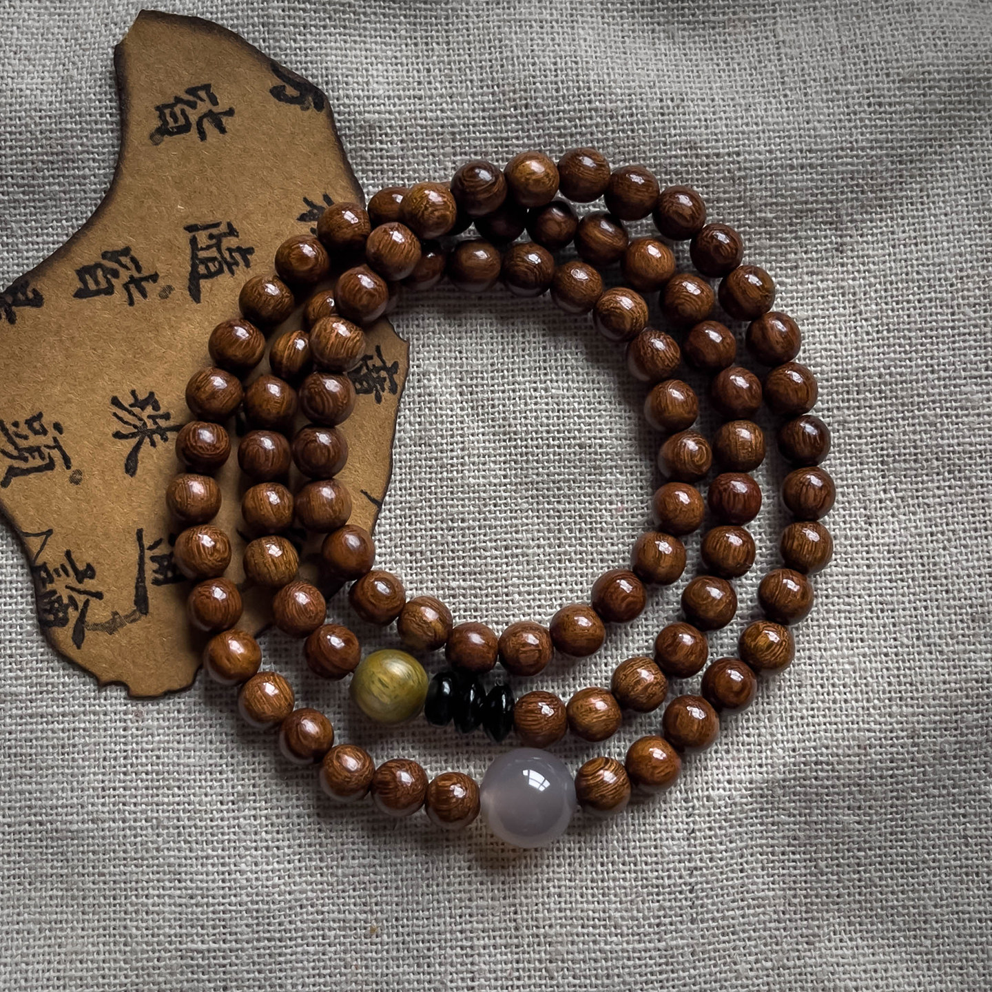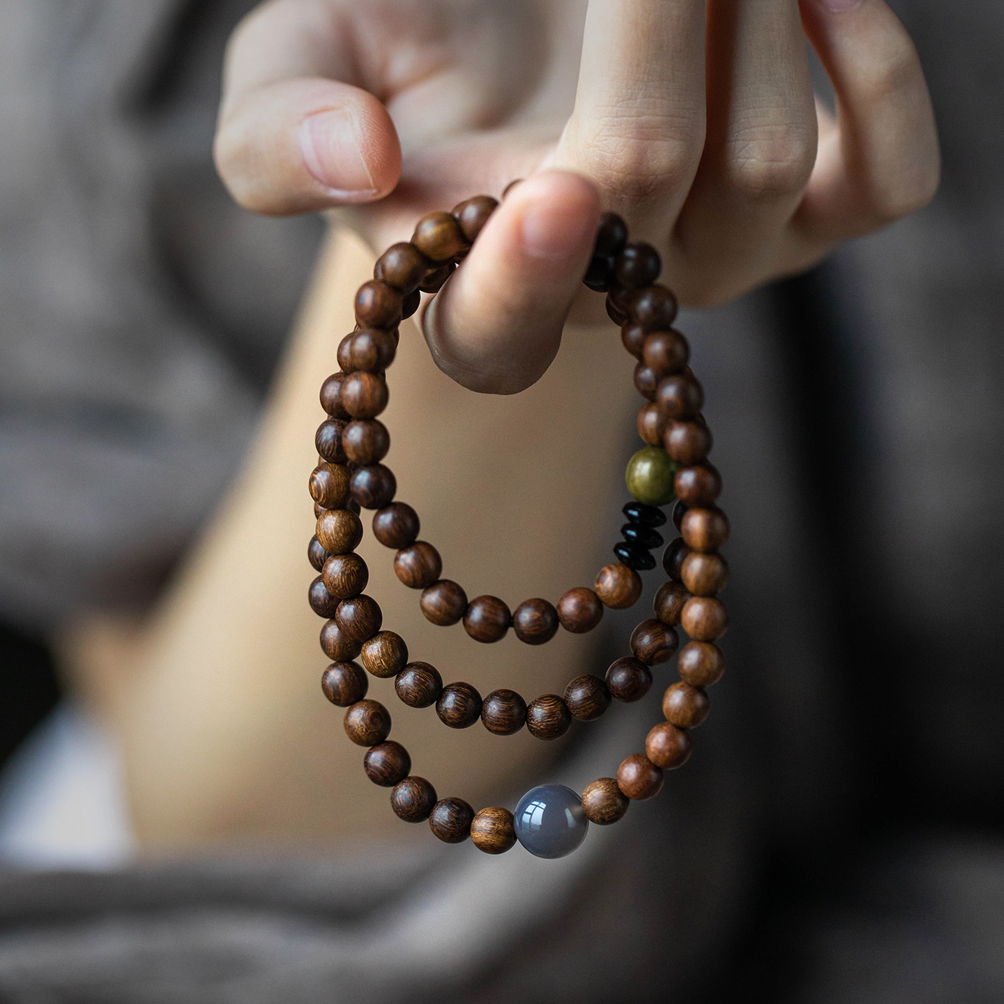 【设计师款】金丝檀多圈手链绿檀玛瑙黑曜石手串念珠精致手饰礼物